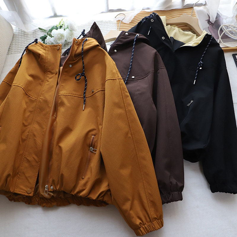 2026早春新款韩版时尚休闲连帽拼接宽松百搭夹克外套女常规厚薄