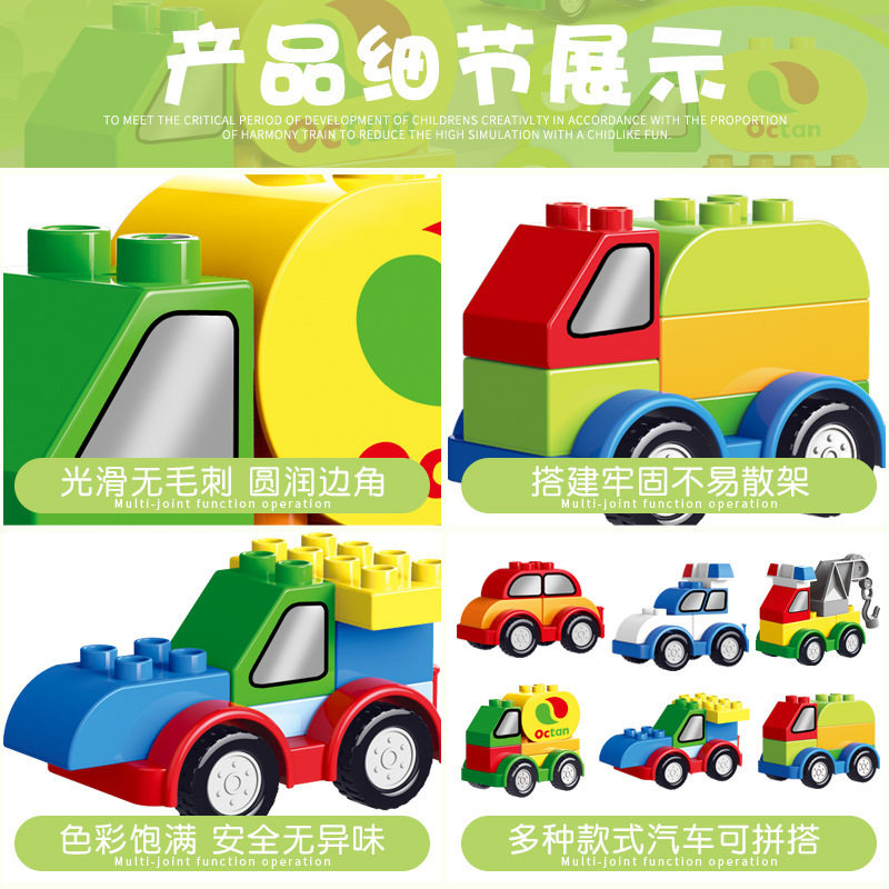中国积木大颗粒拼装汽车挖掘机警车百变工程车宝宝3儿童益智6玩具