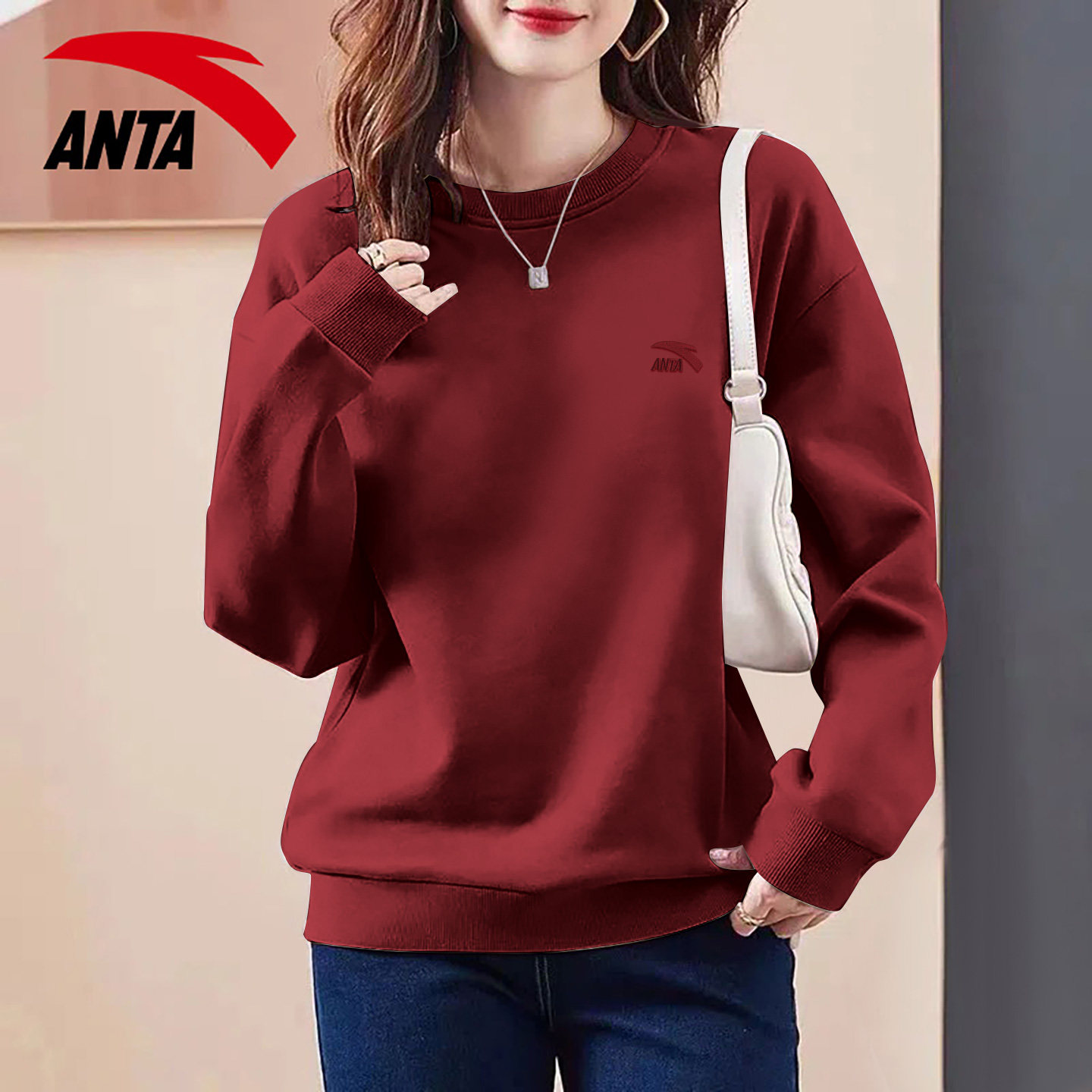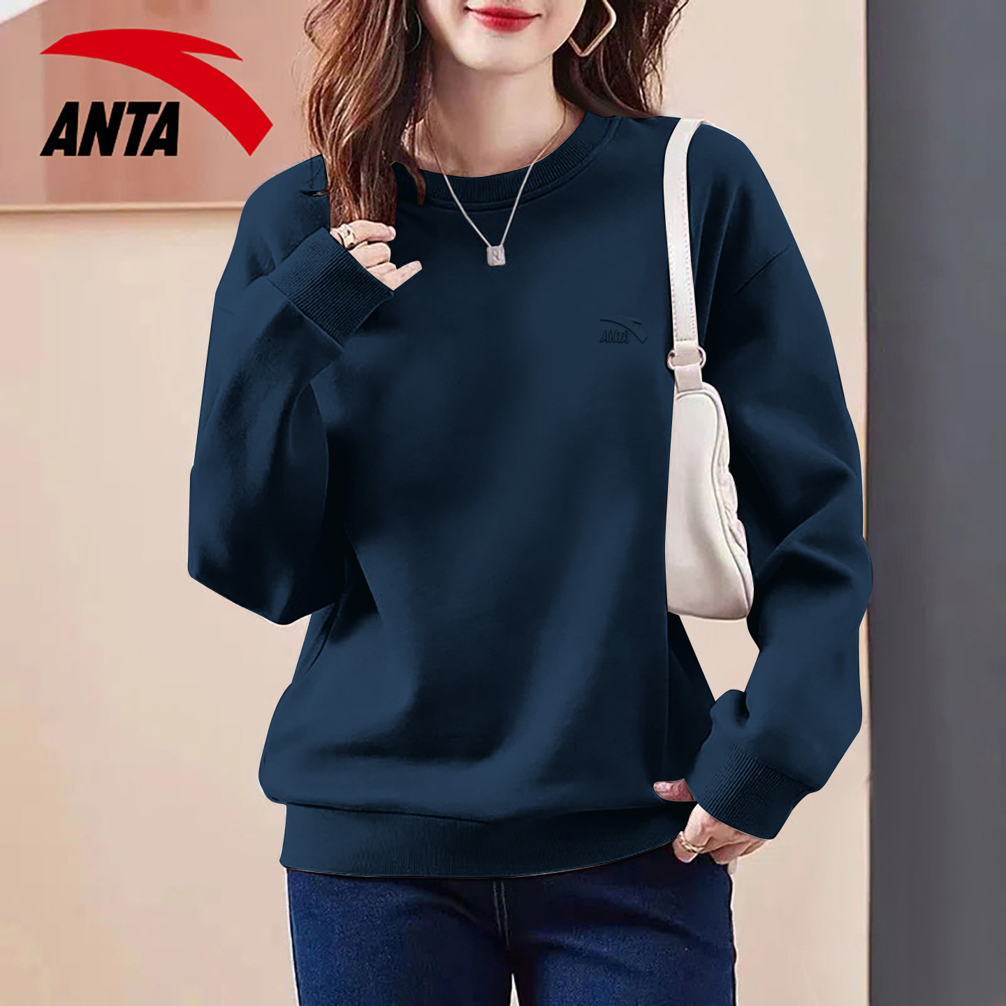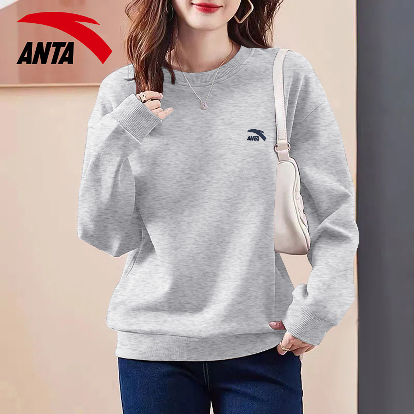 安踏宽松卫衣女款圆领套头衫内搭打底衫2026新款大码休闲纯色女装