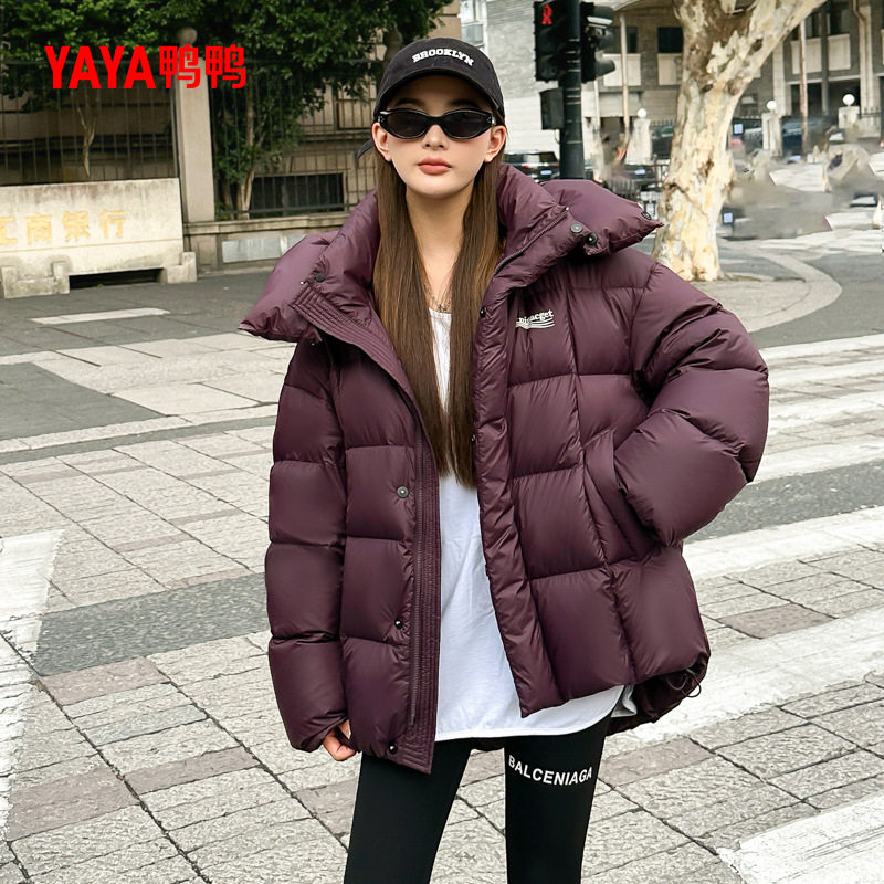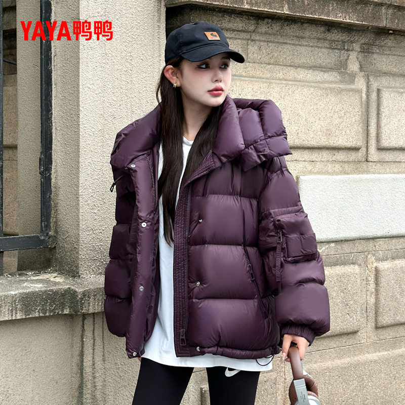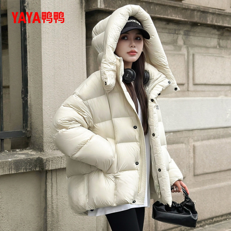 鸭鸭羽绒服2025年冬装新款女士短款连帽加厚时尚百搭宽松休闲外套
