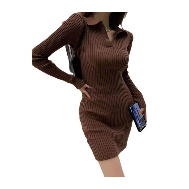 polo领长袖连衣裙女秋冬季新款配大衣内搭辣妹修身打底包臀短裙女