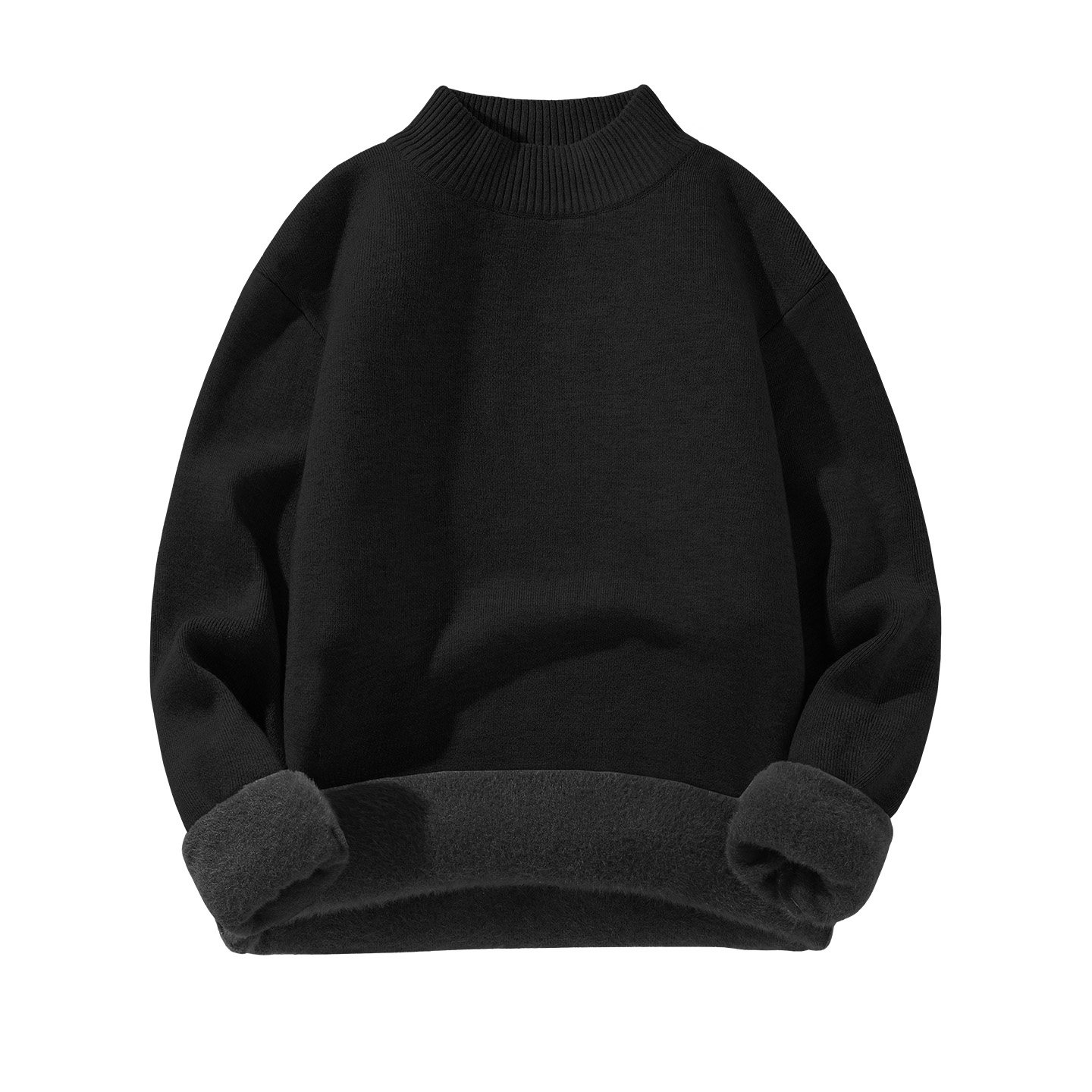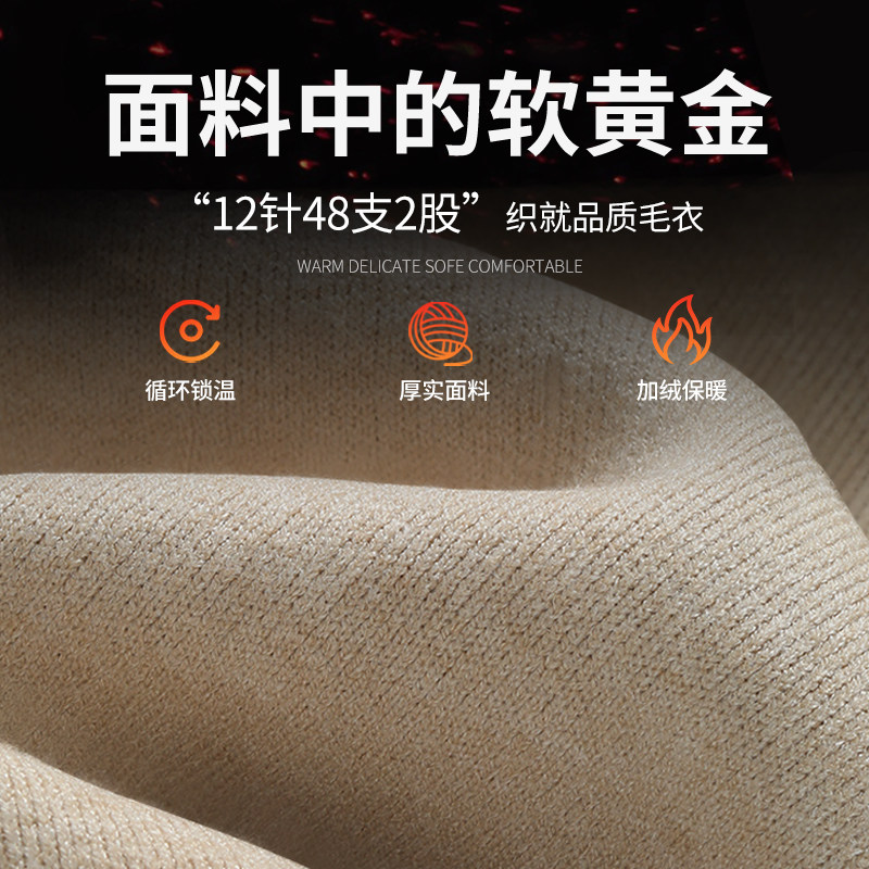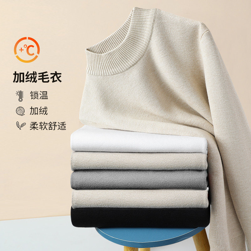 唐狮官方黑色加绒半高领毛衣男款冬季加厚一体绒男士针织打底衫YB