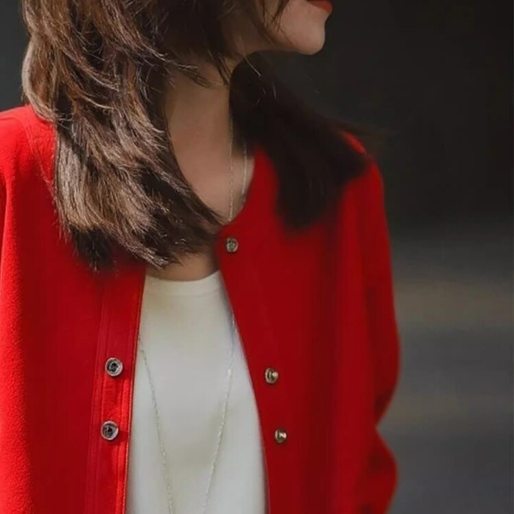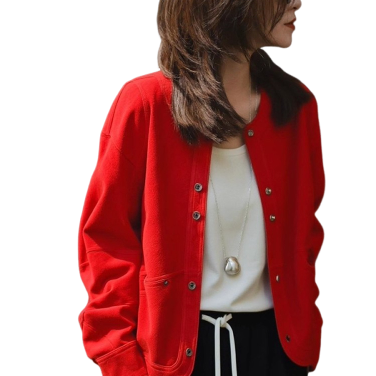 法式红色圆领短外套女款2026秋新款今年流行爆款百搭休闲夹克上衣