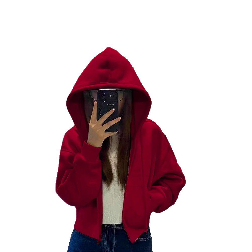 红色卫衣外套女春秋2026新款短款连帽女款上衣开衫初秋季穿搭早秋