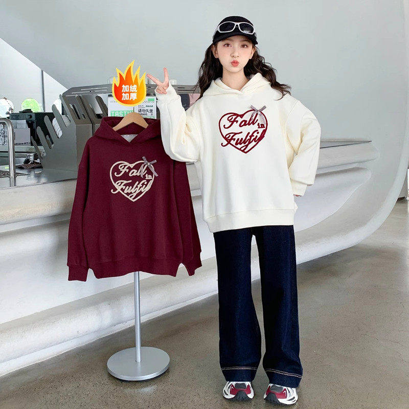 女童卫衣加绒秋冬款2026新款女大童时髦休闲冬装加厚儿童连帽上衣