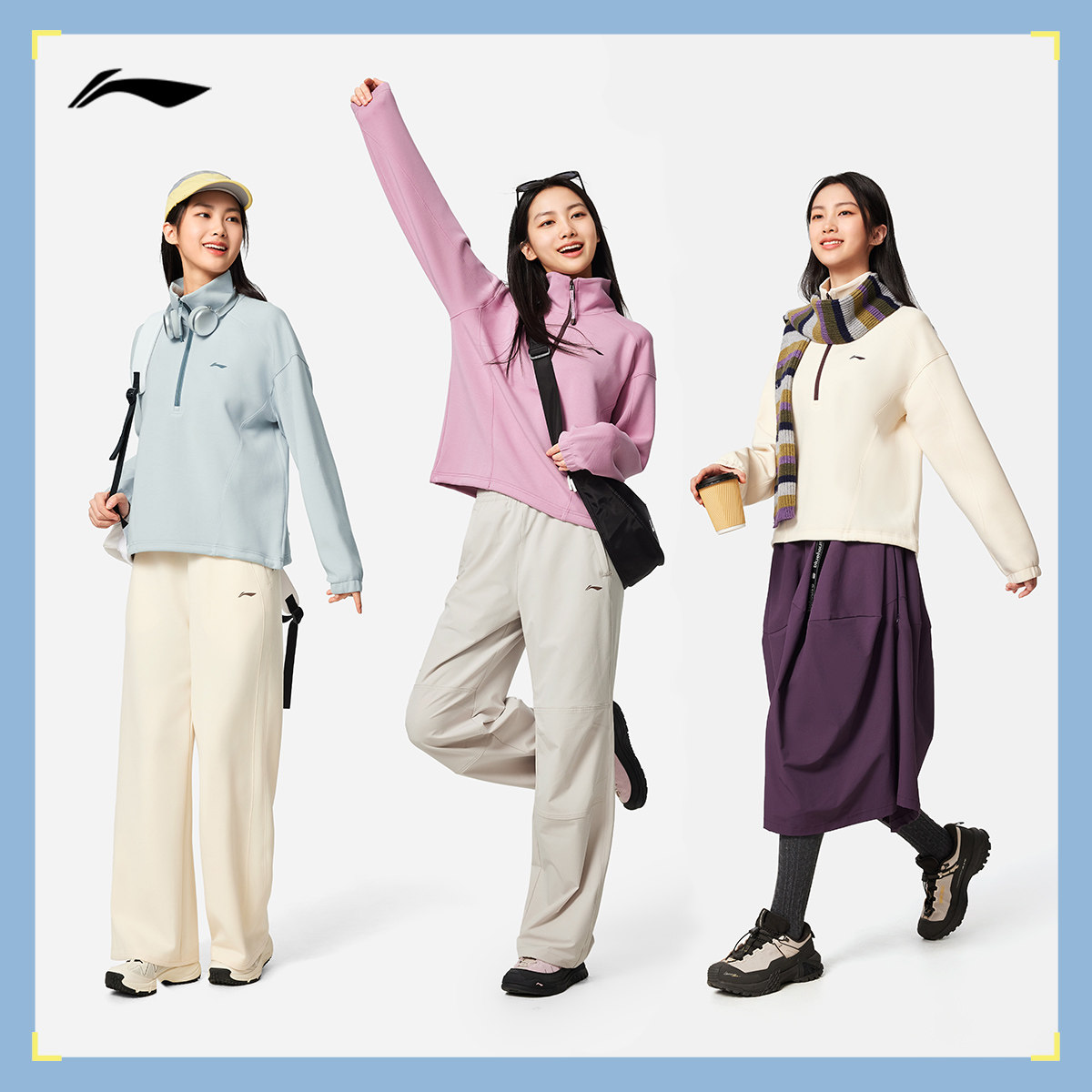 李宁半拉链卫衣女款 秋冬加绒新款瑜伽套头衫长袖立领运动服女