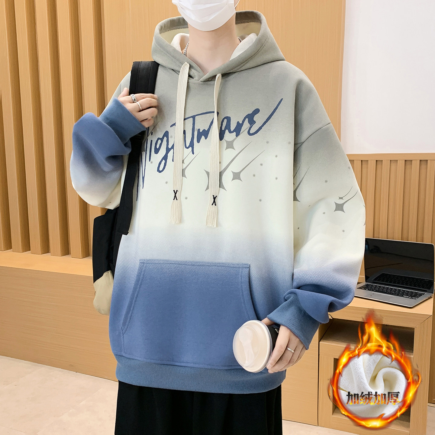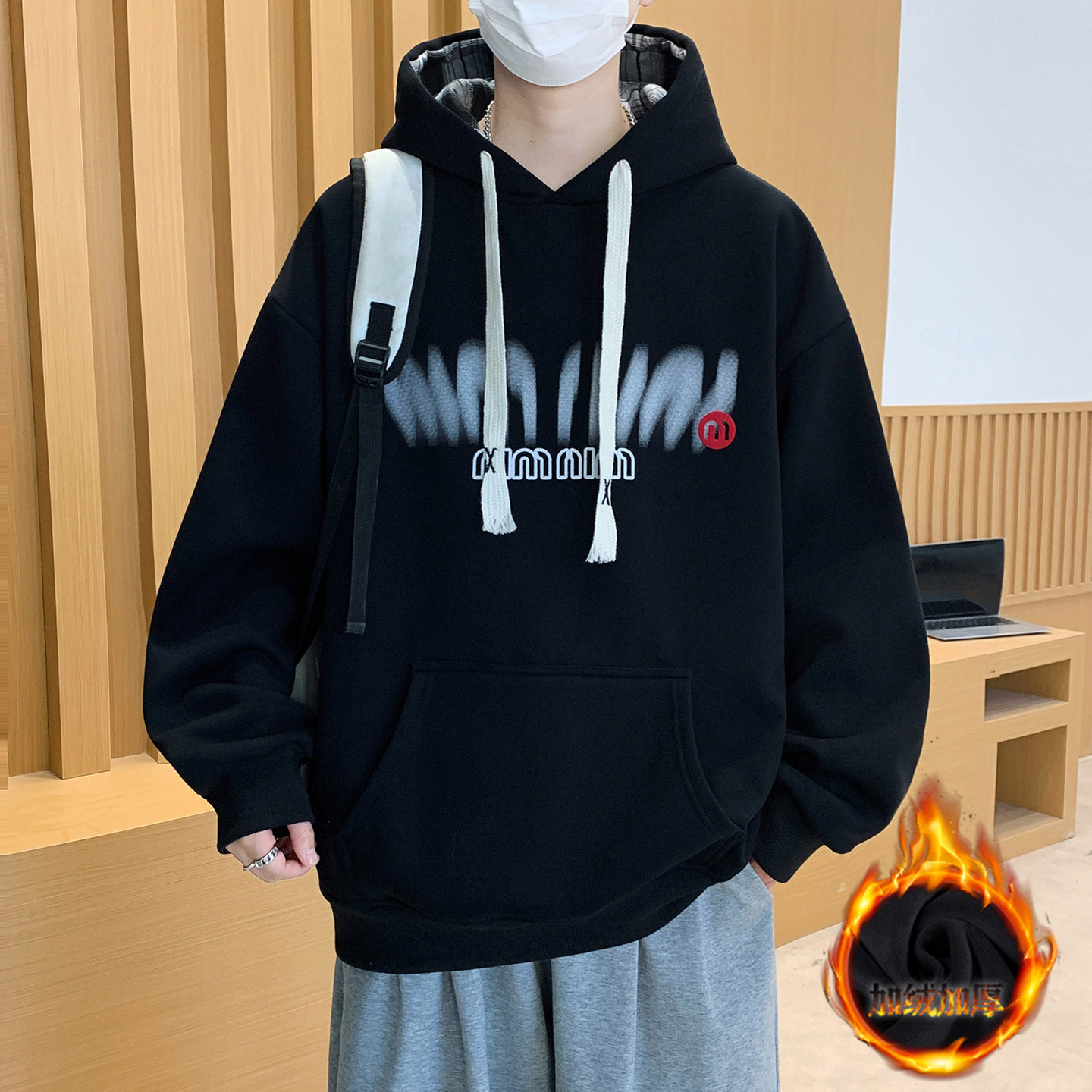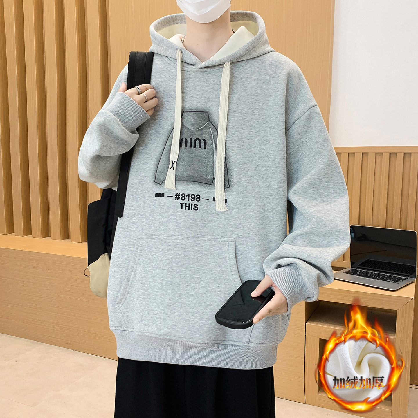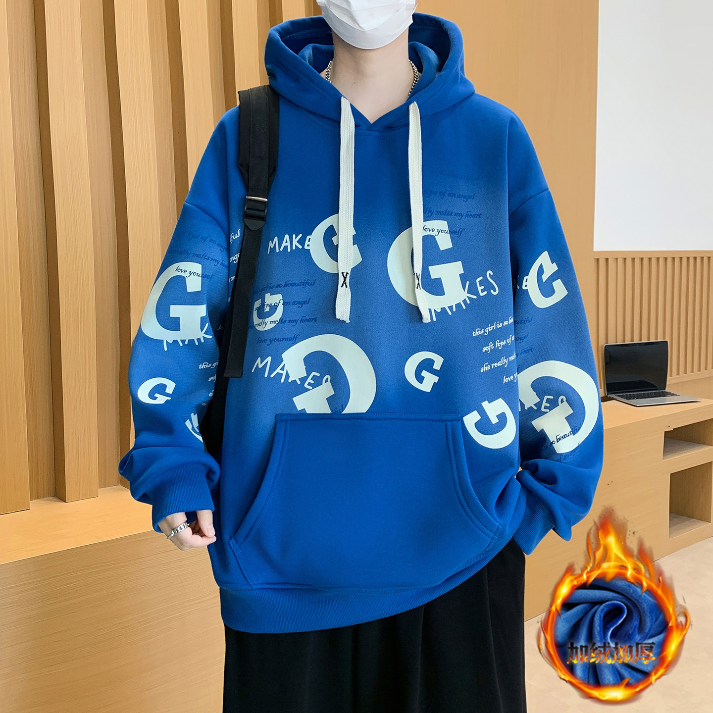 秋冬季连帽卫衣男孩初中学生加绒加厚青少年保暖外套大童冬装上衣
