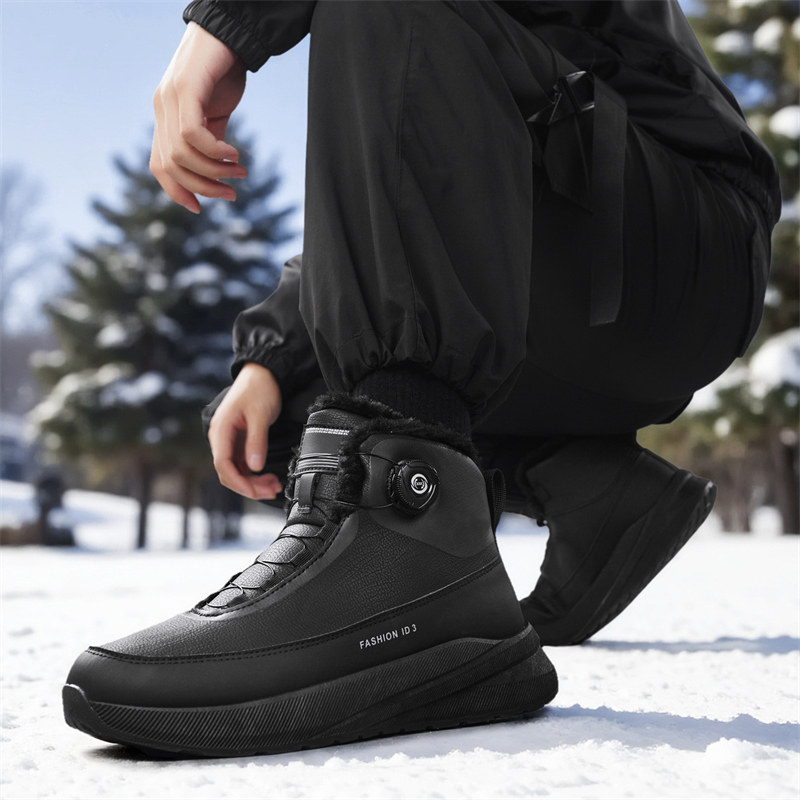 户外高帮男鞋冬季加绒雪地靴2026新款纯黑色旋钮加厚保暖东北棉鞋