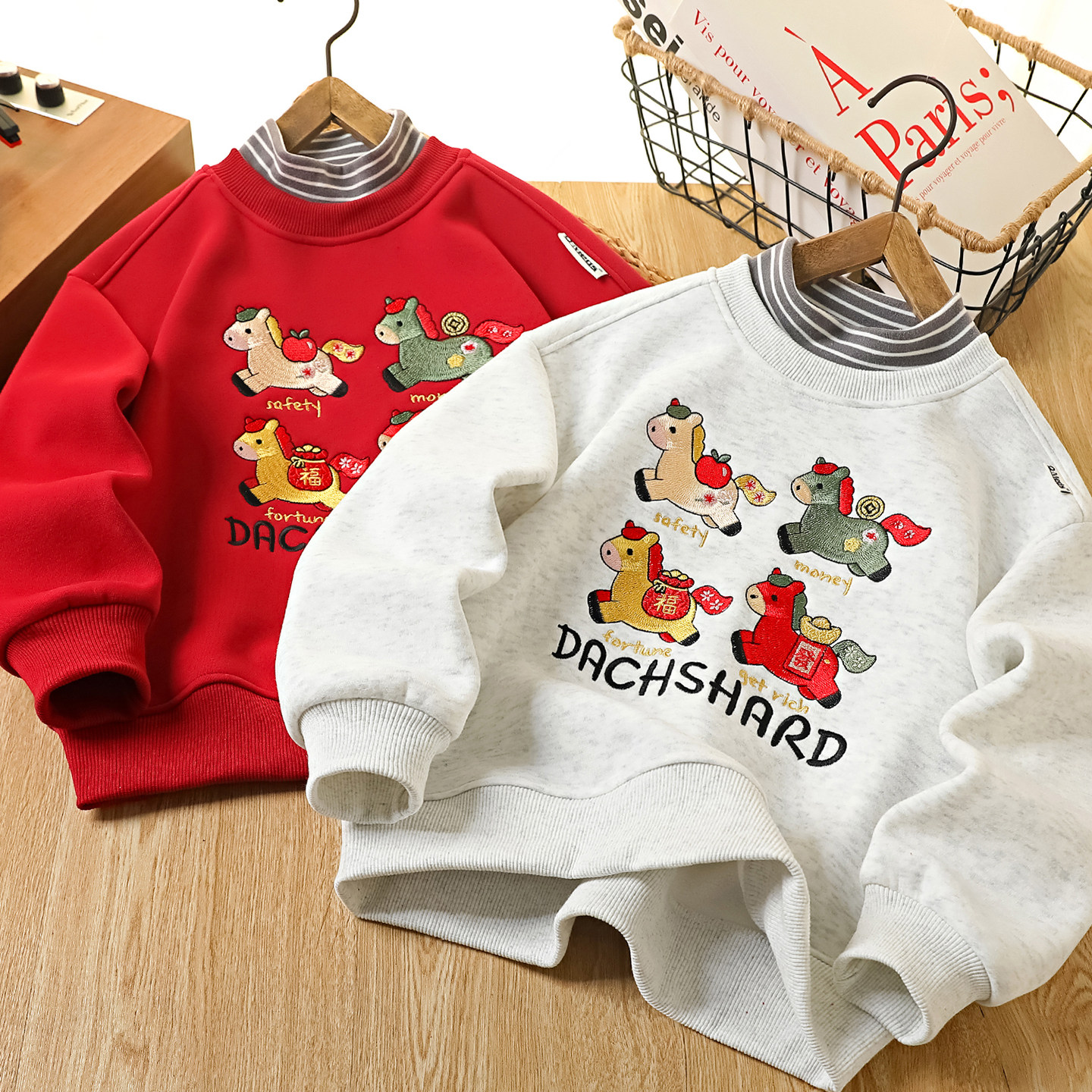 男童加绒红色卫衣马年拜年服2026新款儿童本命年上衣中大童冬装潮