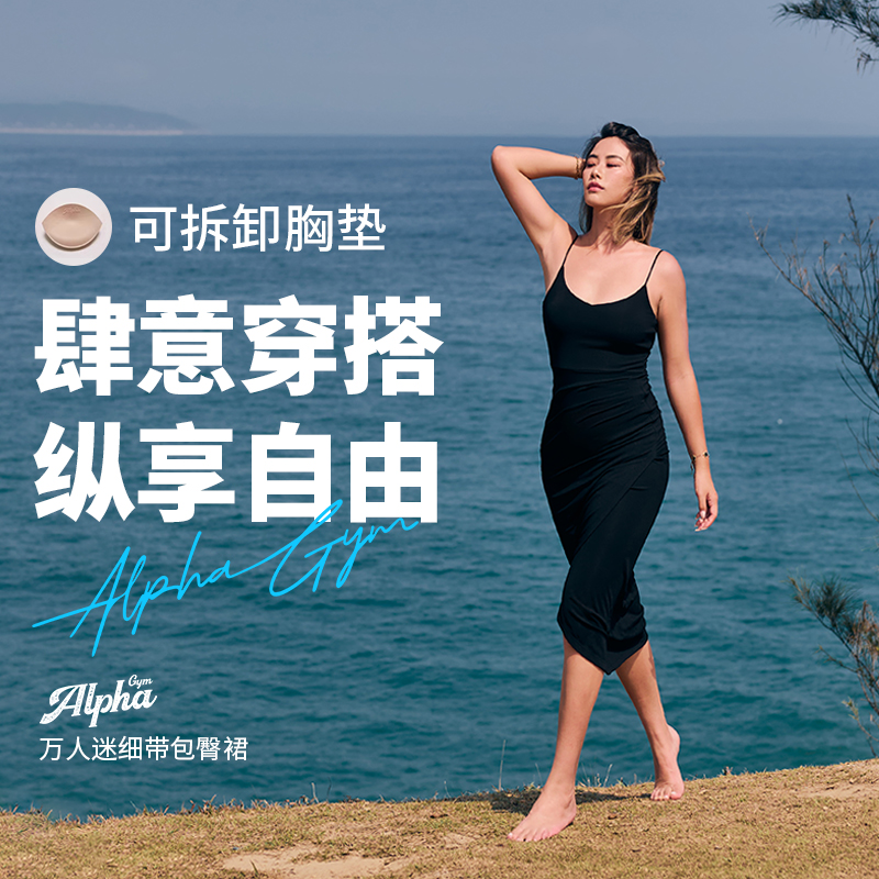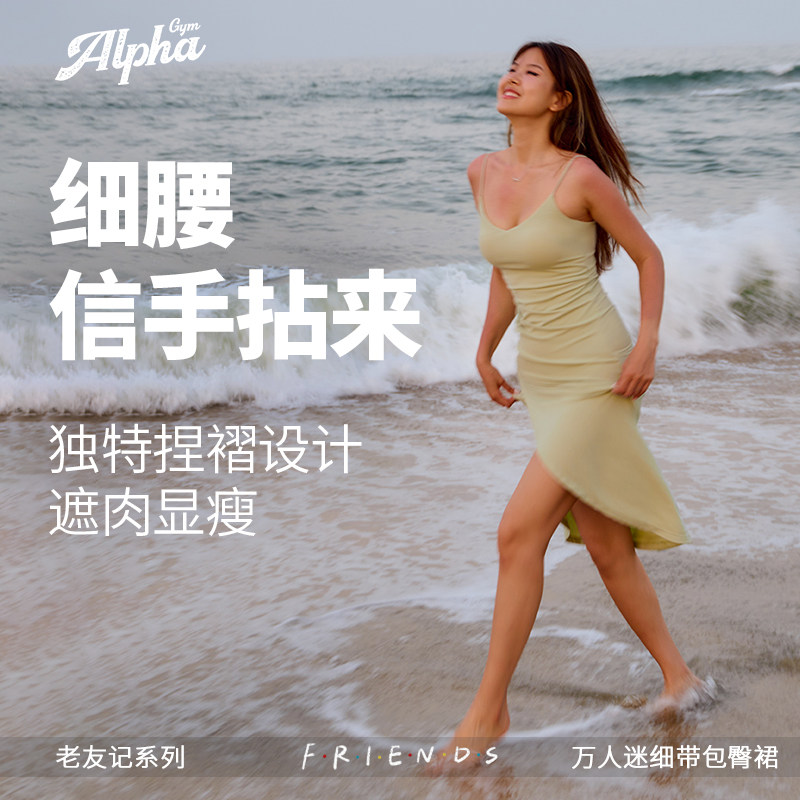alphagym老友记带胸垫吊带连衣裙修身红色中长款瑞秋裙包臀裙子