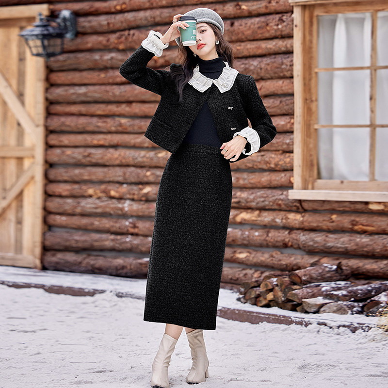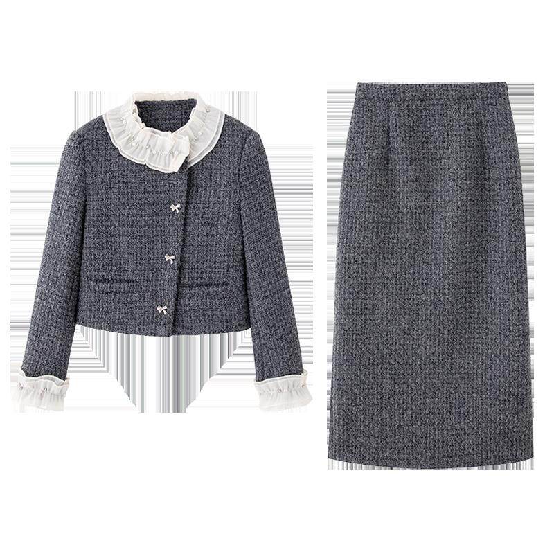 现货新款冬装2026年小香风时尚法式设计感外套显瘦套装裙套装