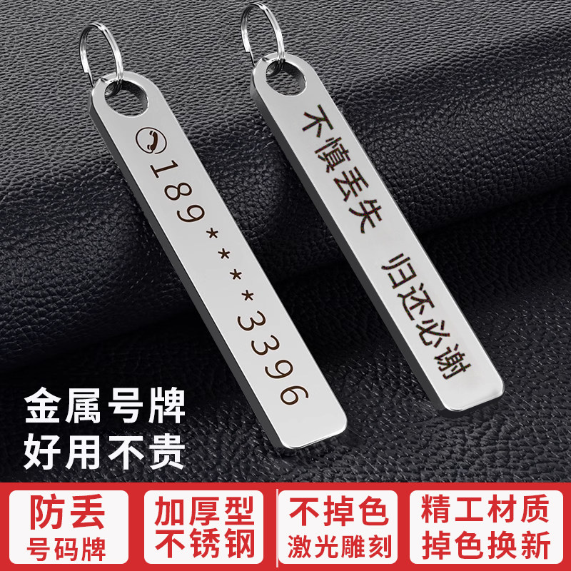车钥匙防丢号码牌定制汽车钥匙扣挂件刻字手机电话男士女环链挂饰