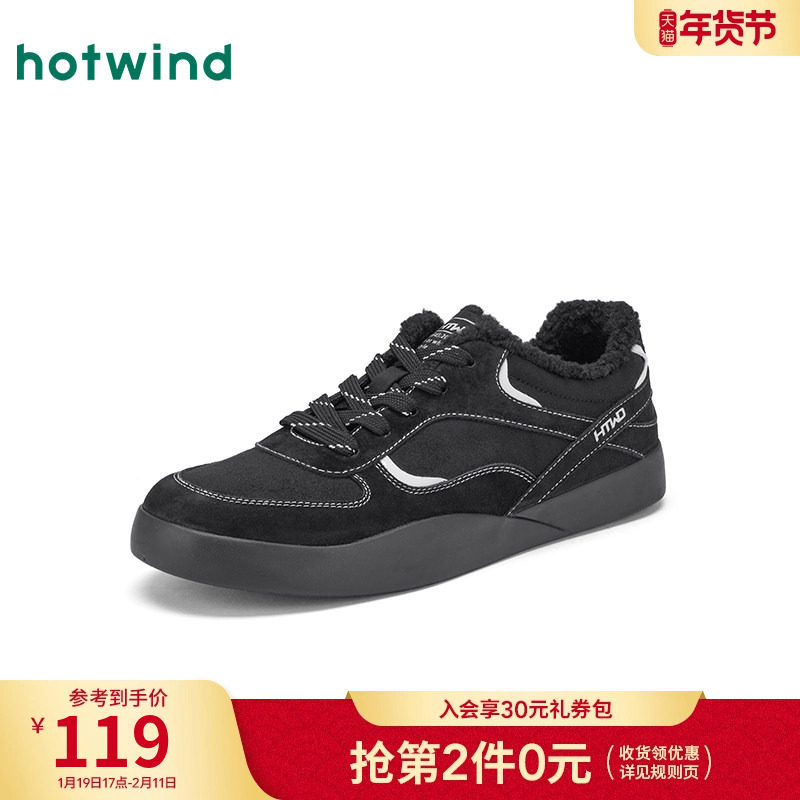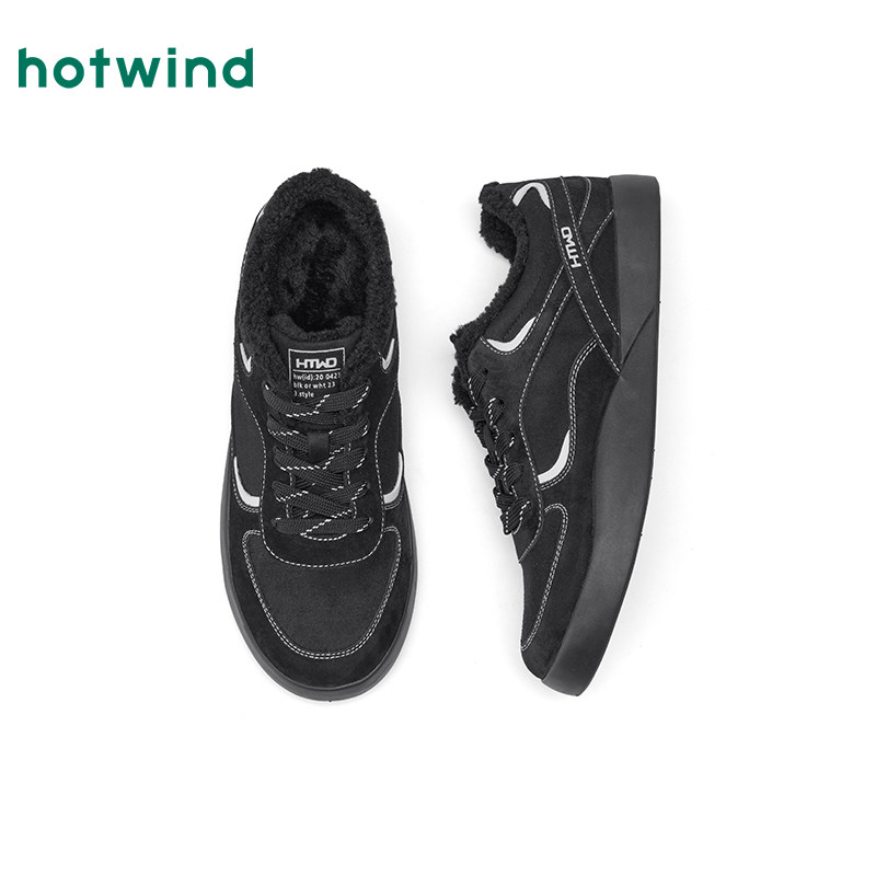 热风男鞋2025年冬季新款男士时尚休闲鞋百搭板鞋黑色运动户外鞋子