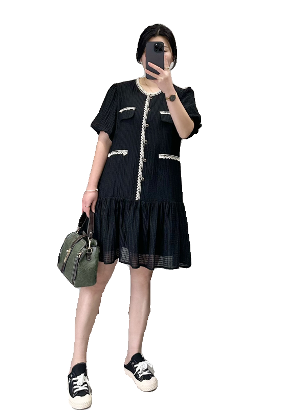 法式洋气小香风连衣裙2025新款夏季小个子气质名媛高级感胖mm裙子
