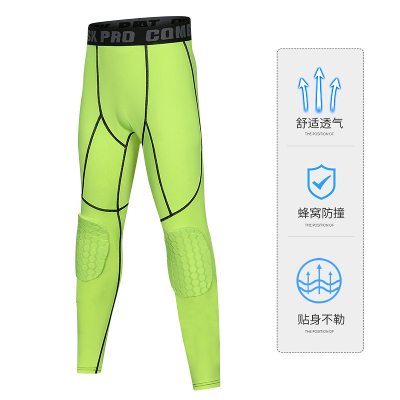 儿童篮球足球紧身长裤蜂窝防撞护膝专业训练长袖弹力速干健身长裤