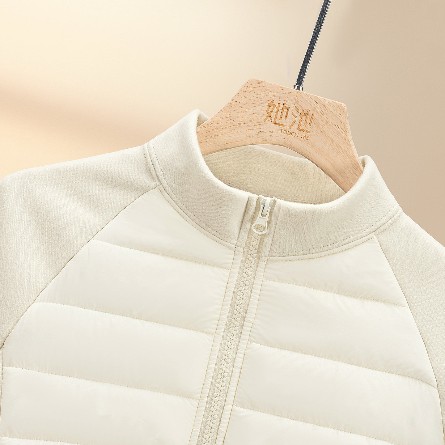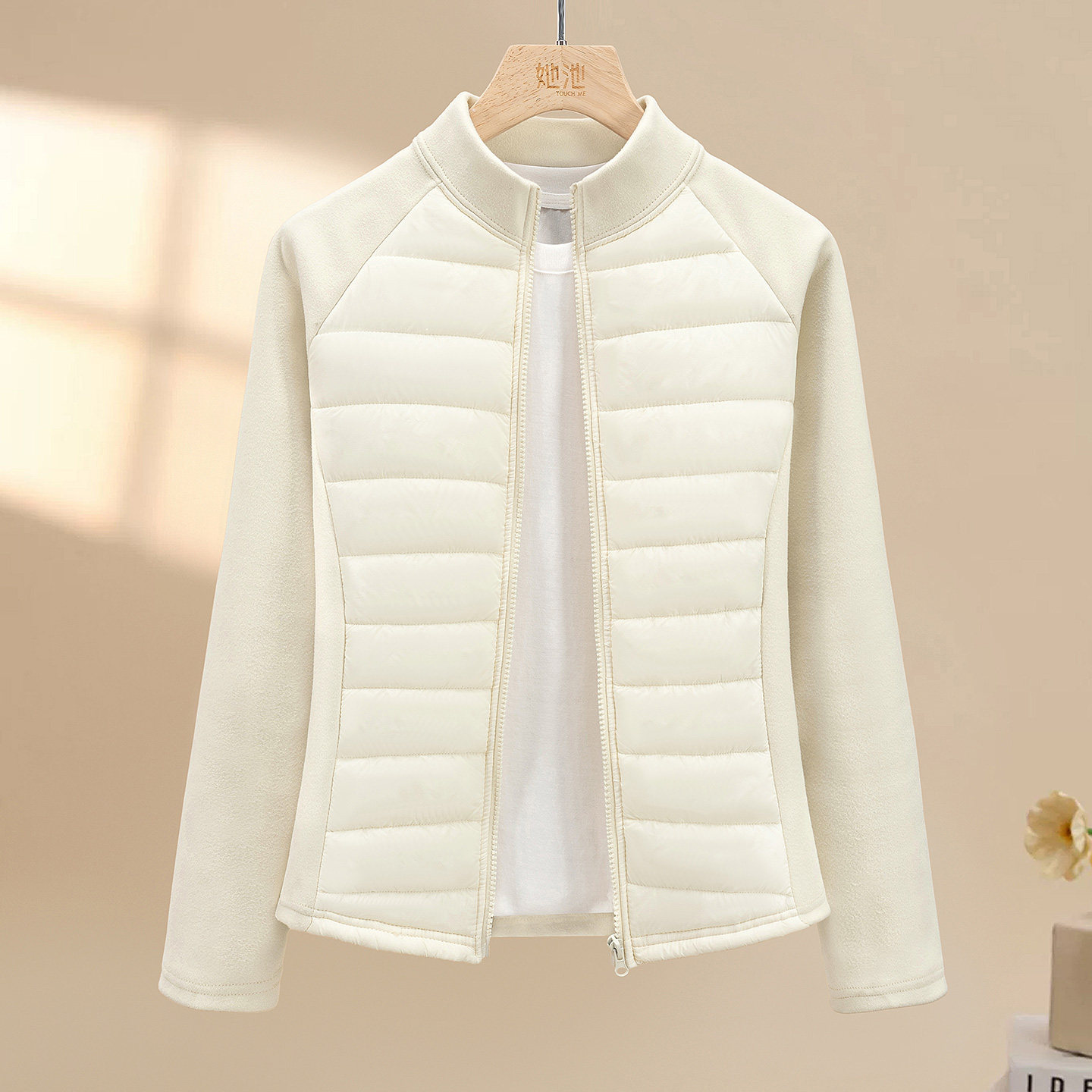 她池修身外套2025冬装新款女装简约立领插肩袖拉链短款保暖上衣