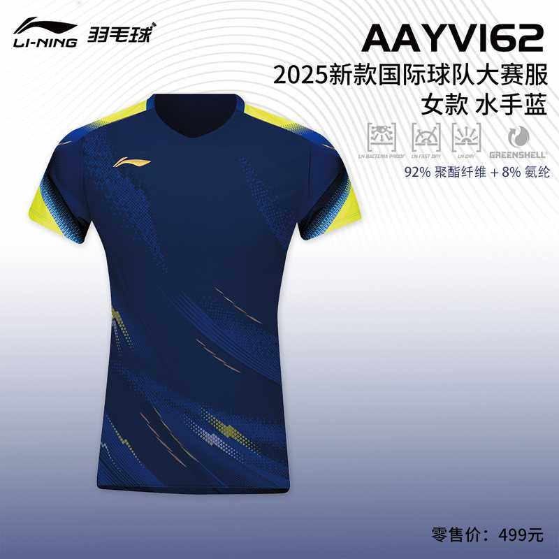 新款李宁羽毛球服国际球队大赛服比赛短袖速干排湿AAYV162/163