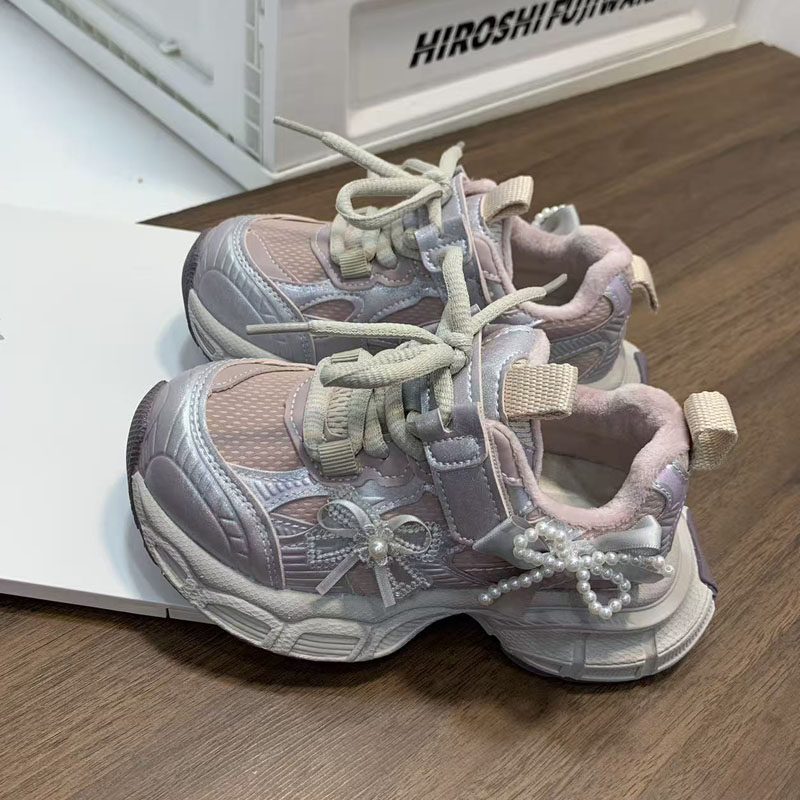 小孩女孩老爹运动休闲女童厚底增高单鞋子中大童加厚春秋2026新款
