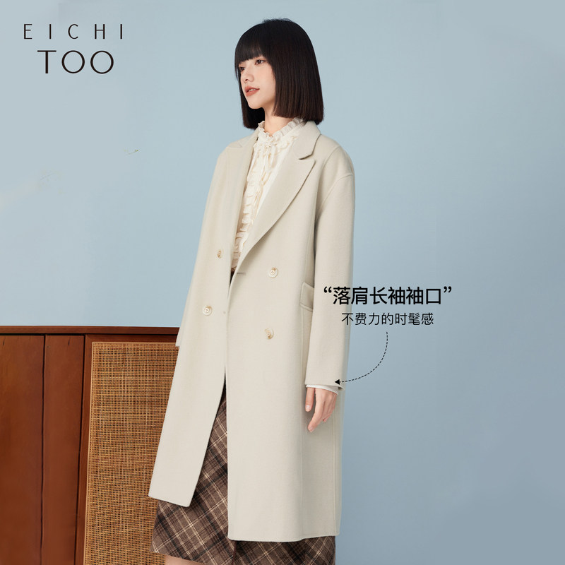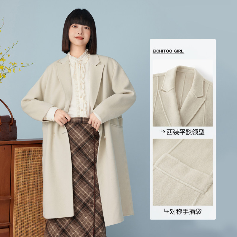 爱居兔冬季新款温柔气质通勤时尚全羊毛双面呢大衣外套
