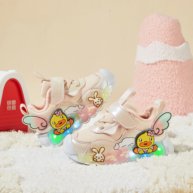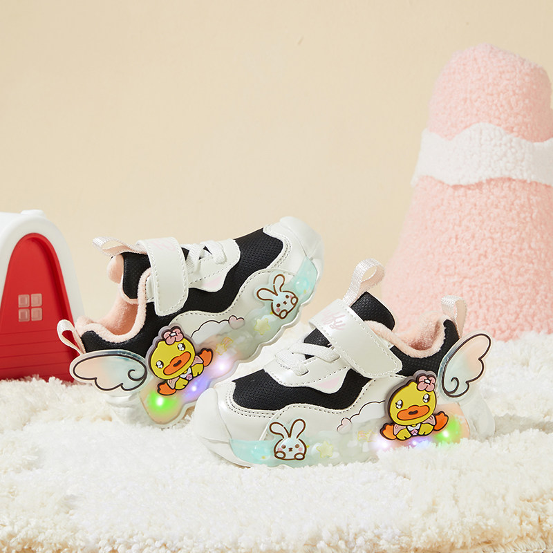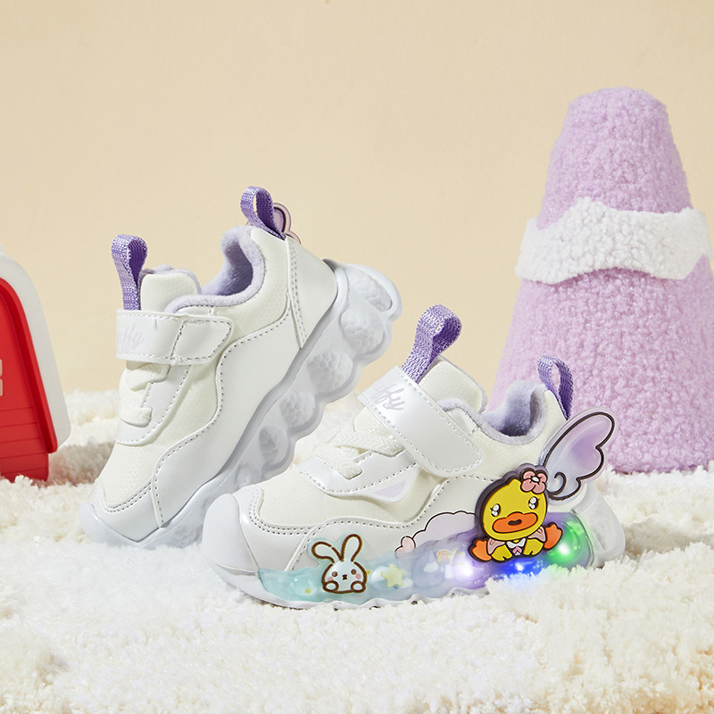bduck小黄鸭童鞋运动鞋女童冬季新款儿童亮灯鞋加绒宝宝鞋子二棉