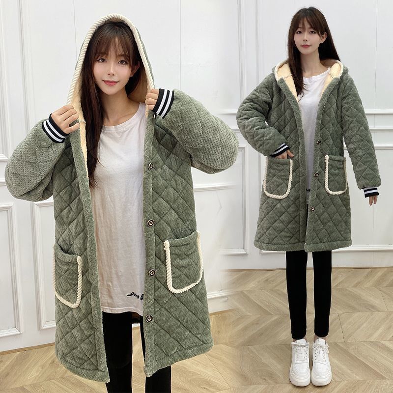 新款冬天罩衣女冬季加绒加厚外穿女款大码中长款T厨房保暖外套棉