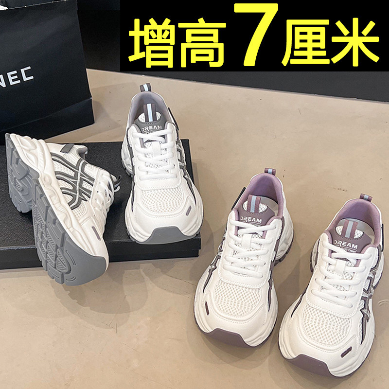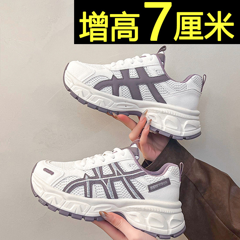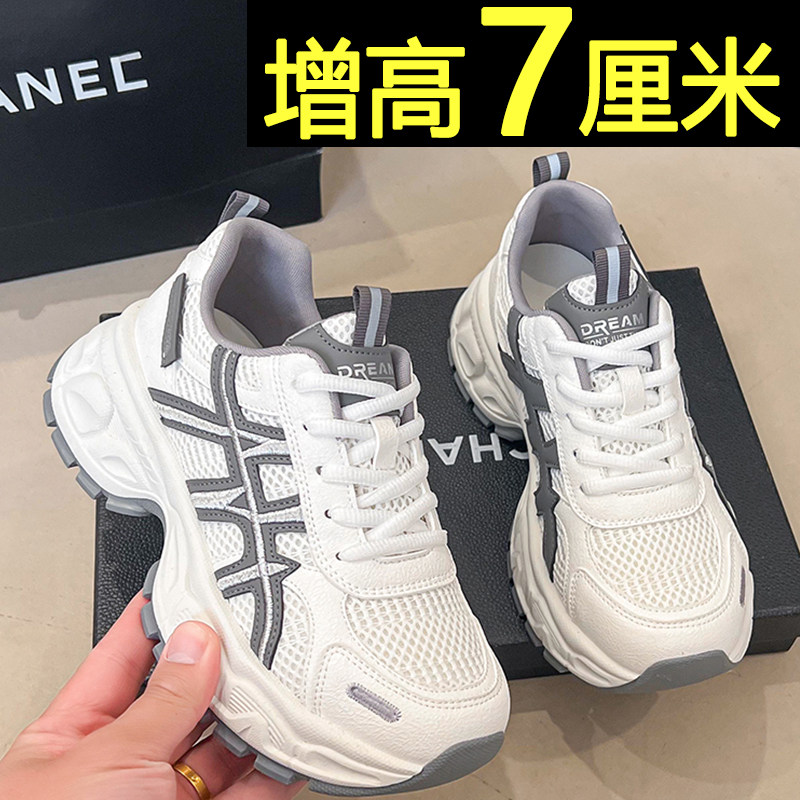 厚底白色老爹鞋女款2026新款春季百搭休闲运动鞋内增高轻便小白鞋