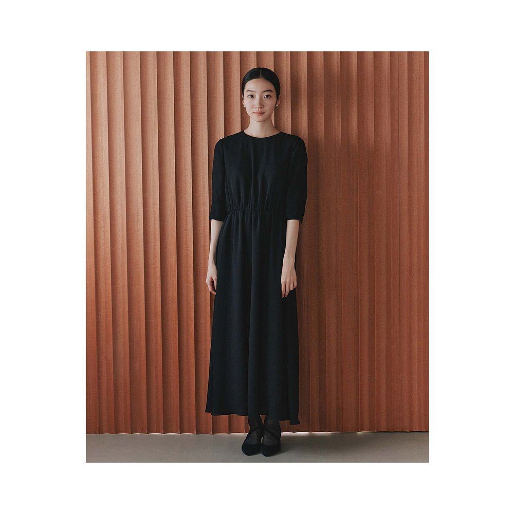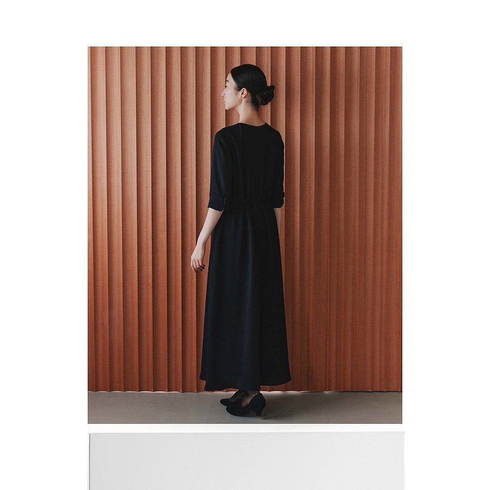 1h可退 日本直邮kaene 女士黑色中袖雪纺礼服裙 101126连衣裙长裙