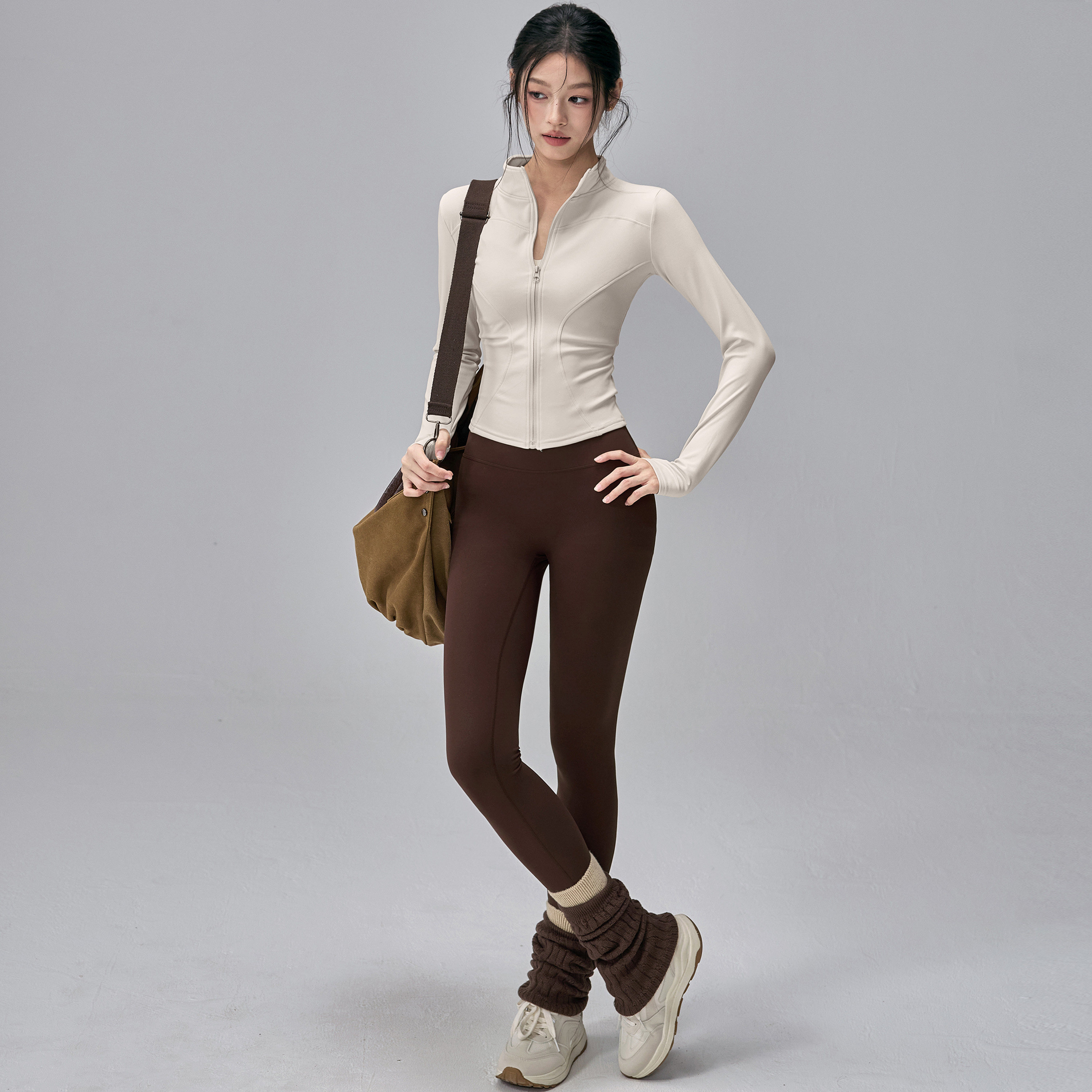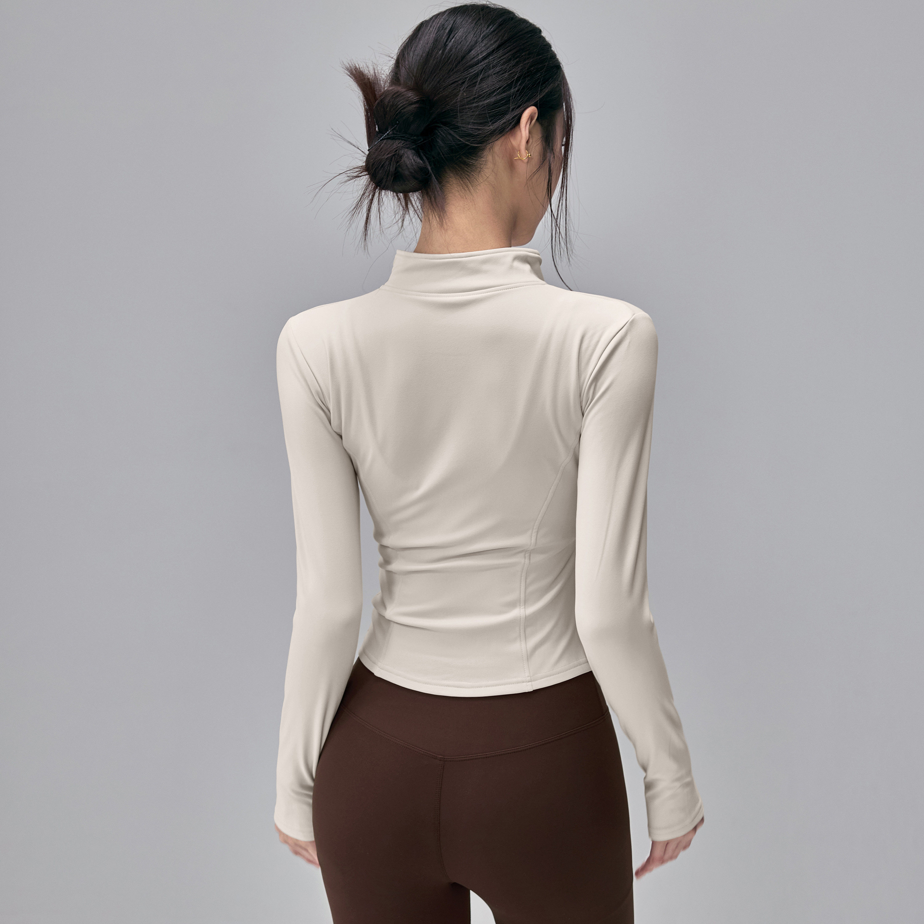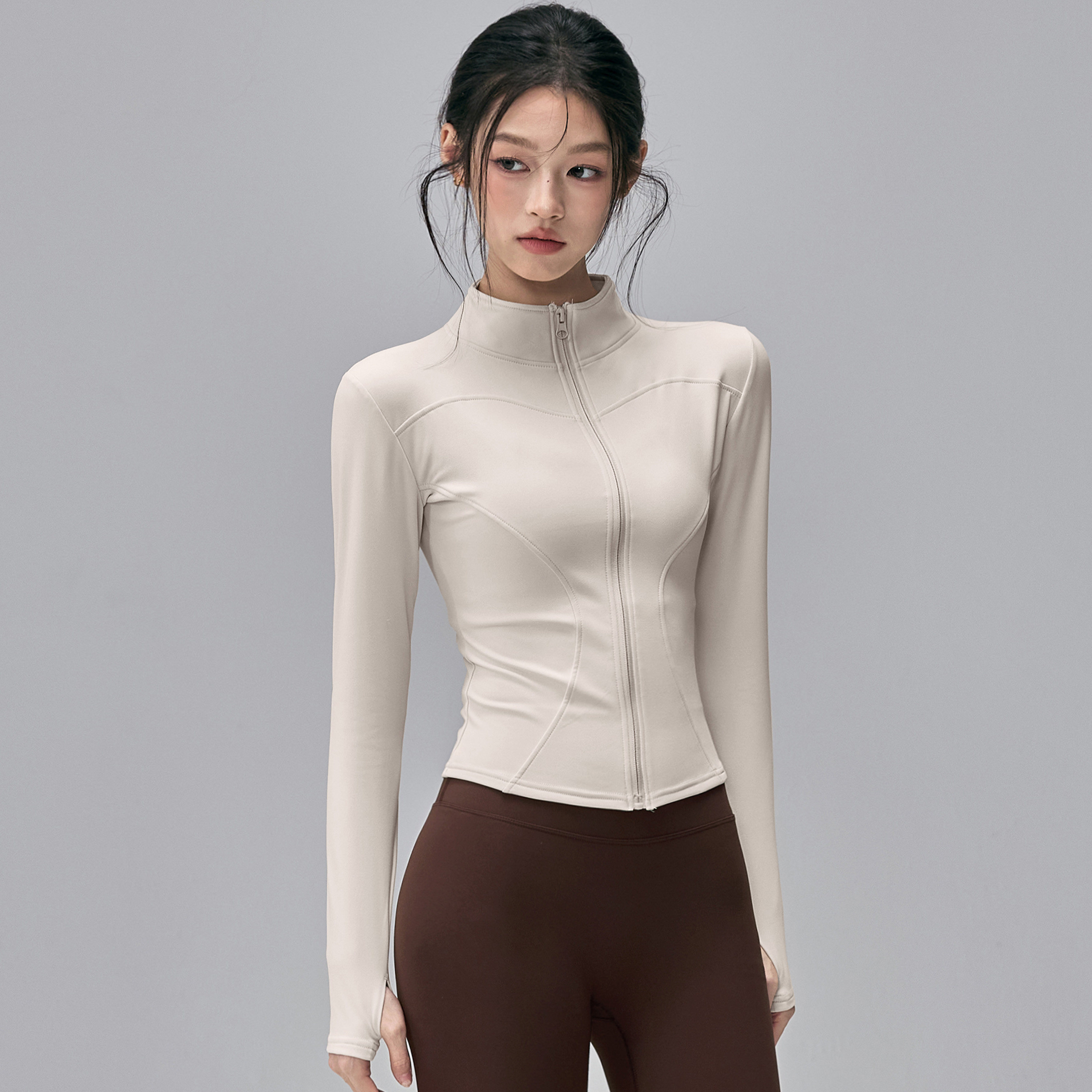 健身女孩加绒瑜伽服外套立领修身户外骑行跑步长袖普拉提运动上衣