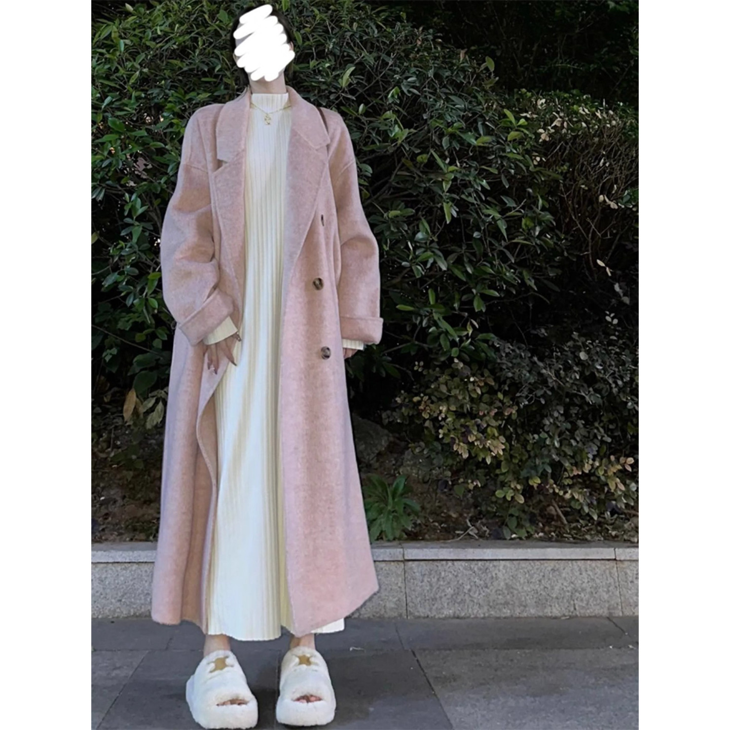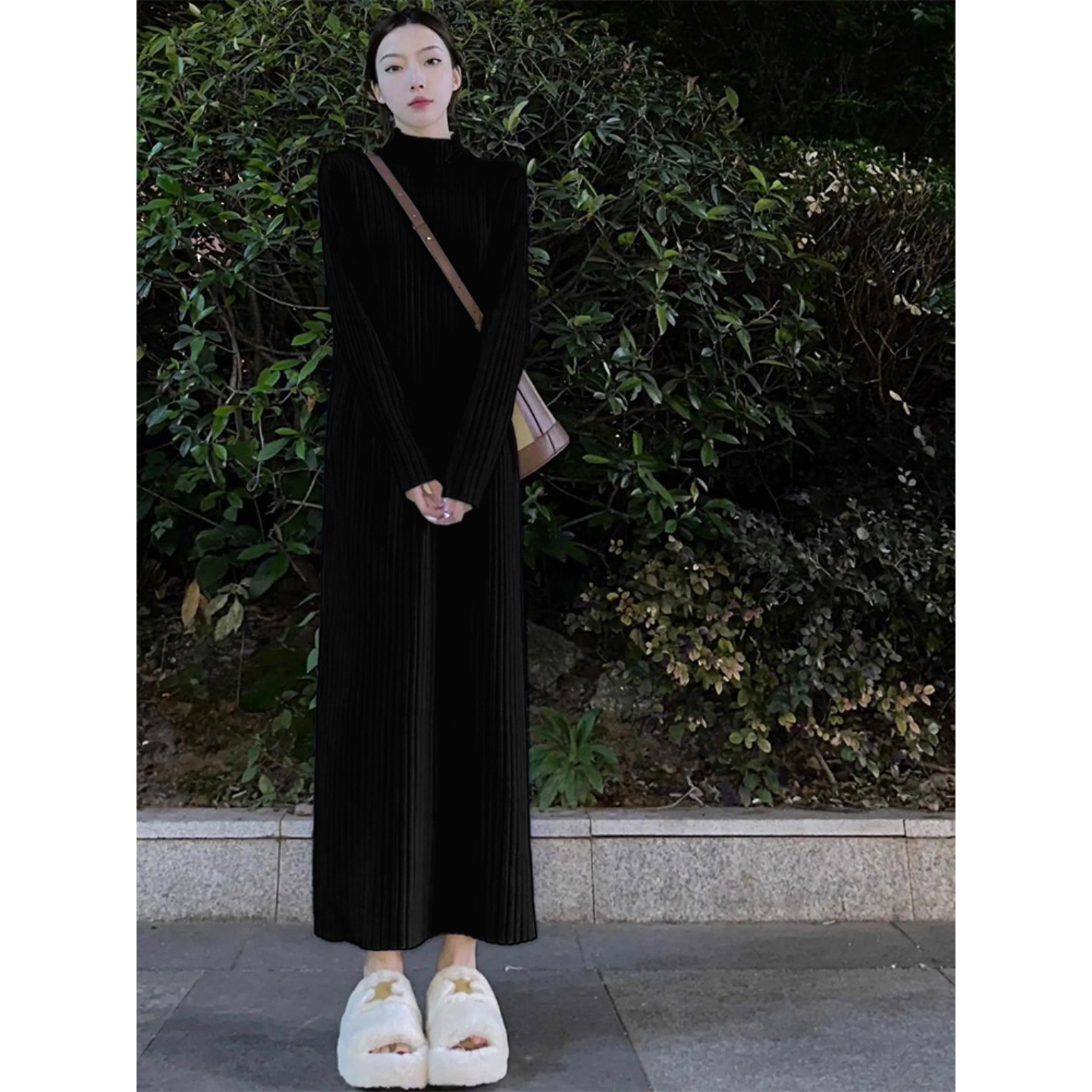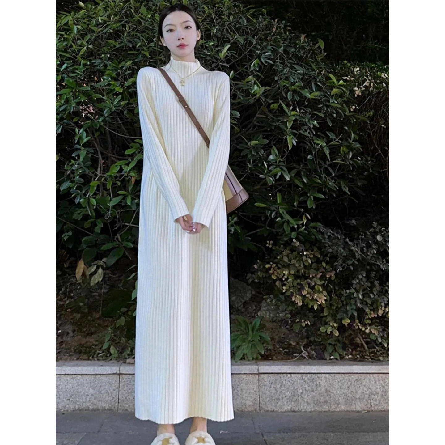纸片人春白色长裙针织连衣裙子女新款秋冬大衣内搭打底长款毛衣裙
