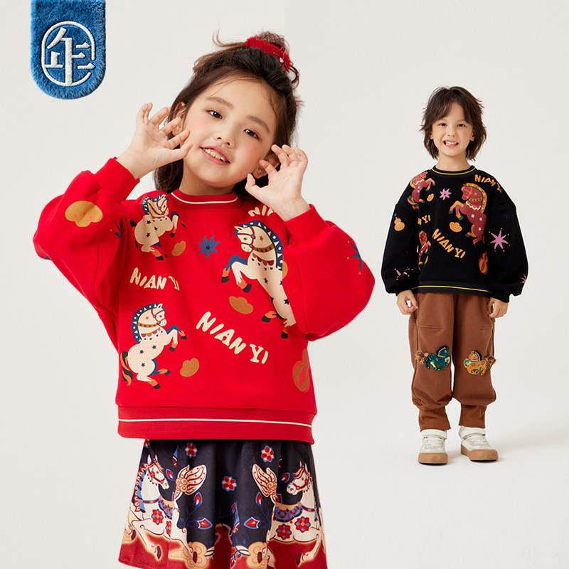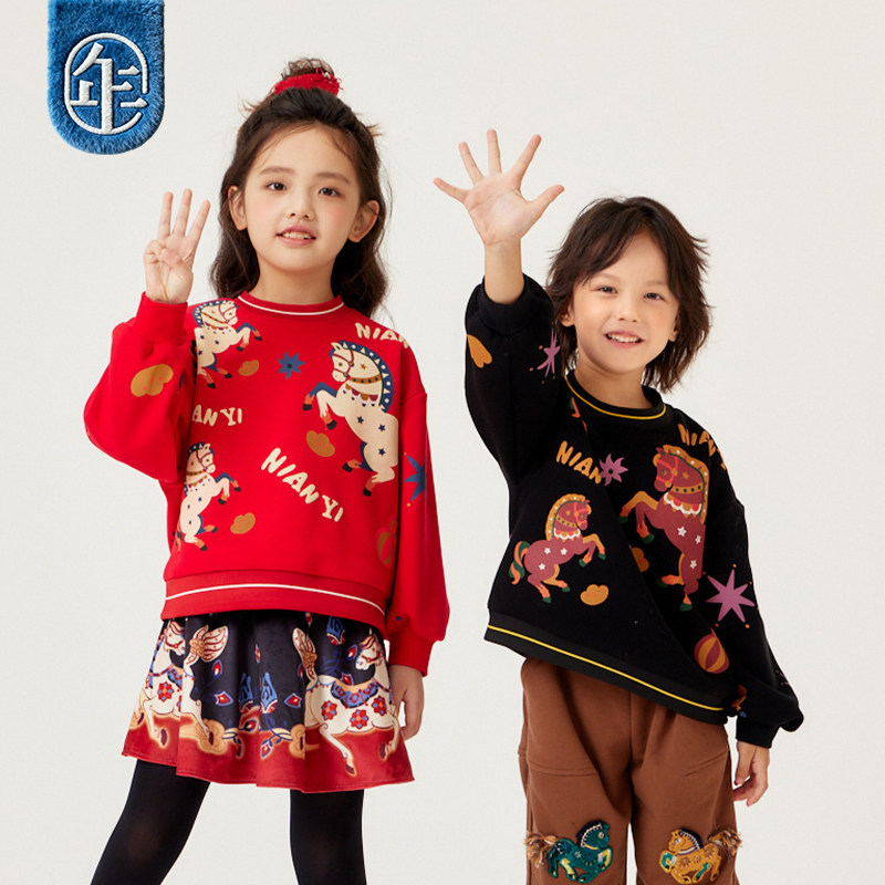 年衣童装卫衣亲子款冬季新款男孩女孩中式国风套头加厚上衣过年服