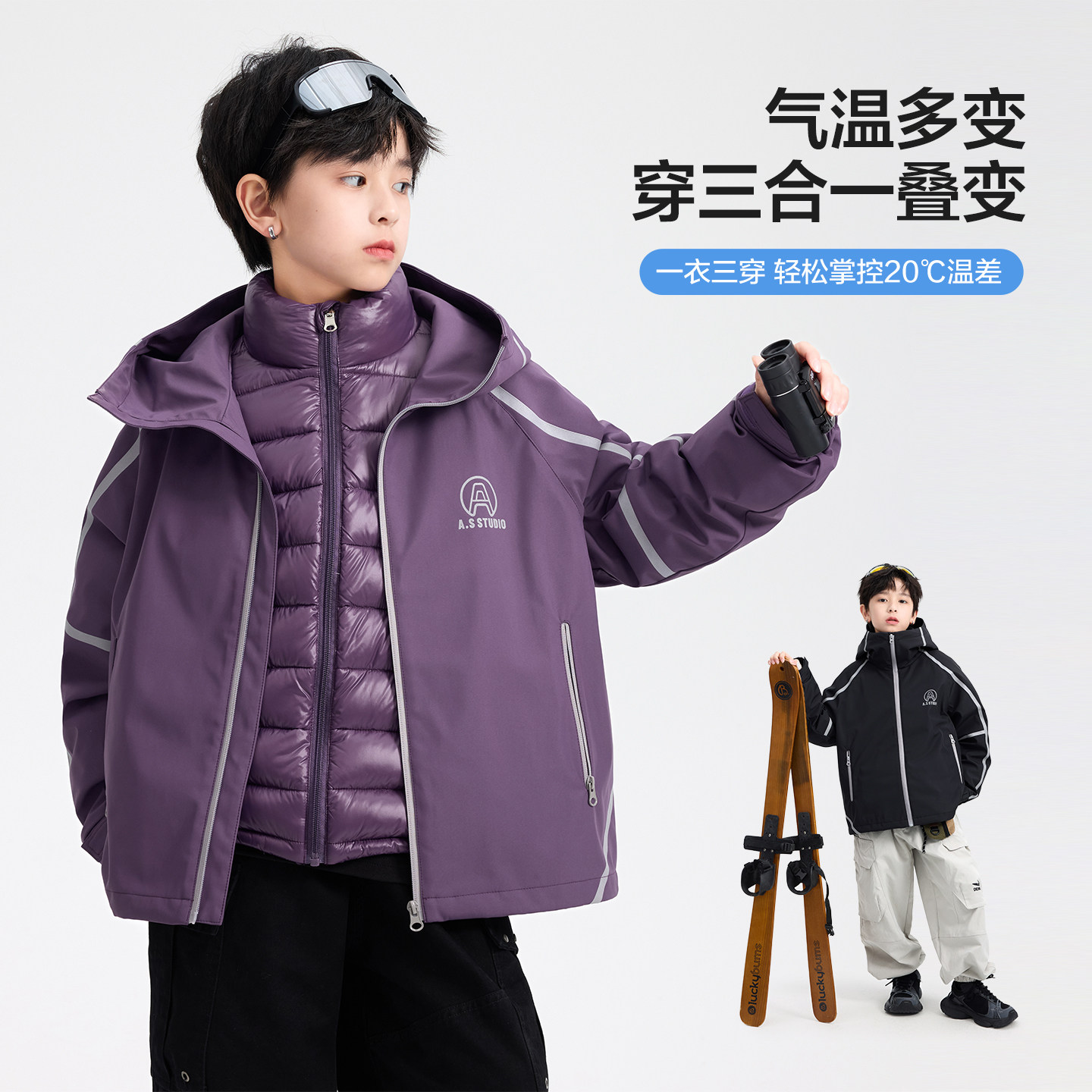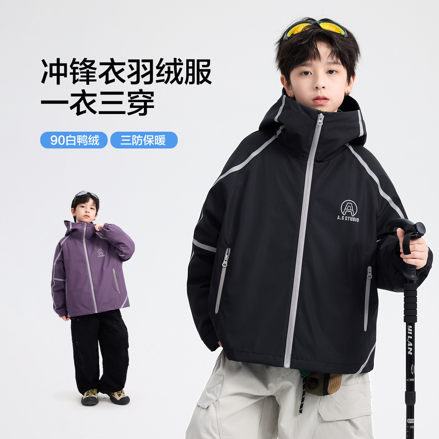 男童轻薄款羽绒服内胆儿童男款冲锋衣外套冬装2025新款加厚三合一