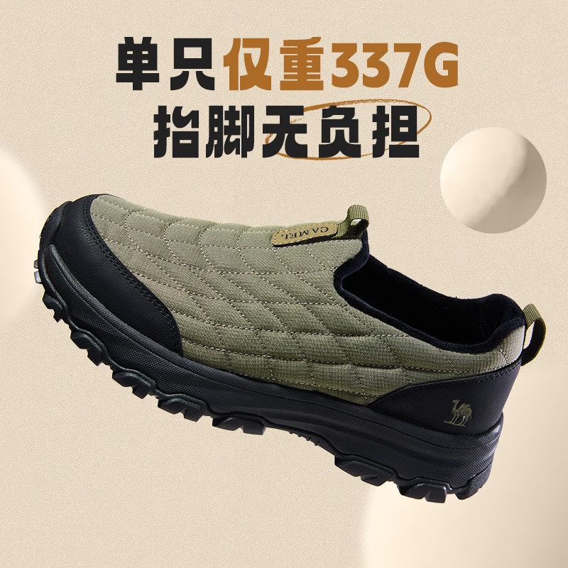 骆驼男鞋冬季加绒加厚防寒保暖低帮一脚蹬防滑防撞休闲雪地棉鞋子