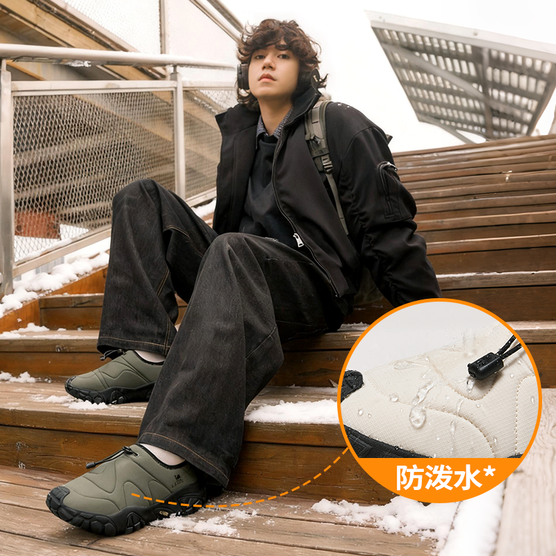 骆驼男鞋冬季加绒加厚保暖一脚蹬雪地靴防泼水防滑防寒休闲棉鞋子