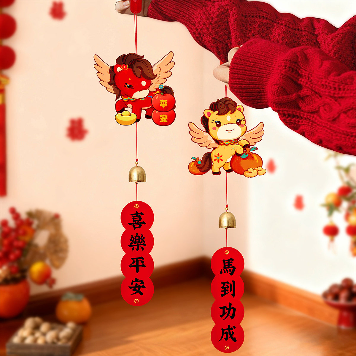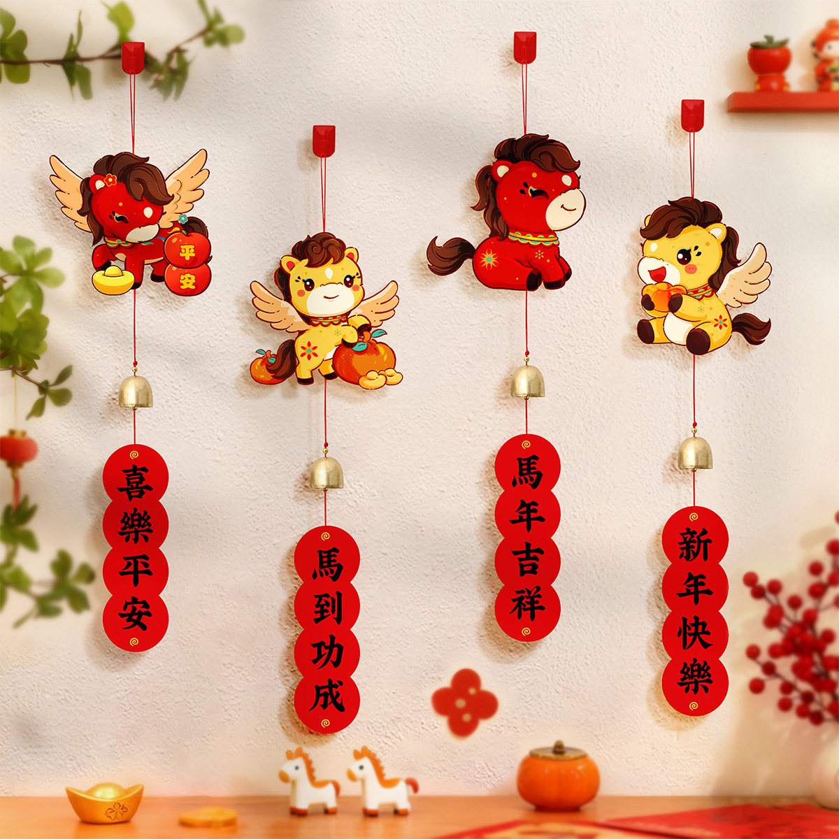 马年风铃挂件2026新年春节布置客厅墙面门把手挂饰过年喜庆福吊饰