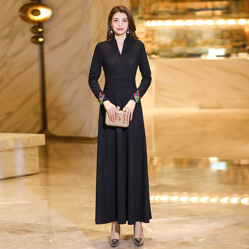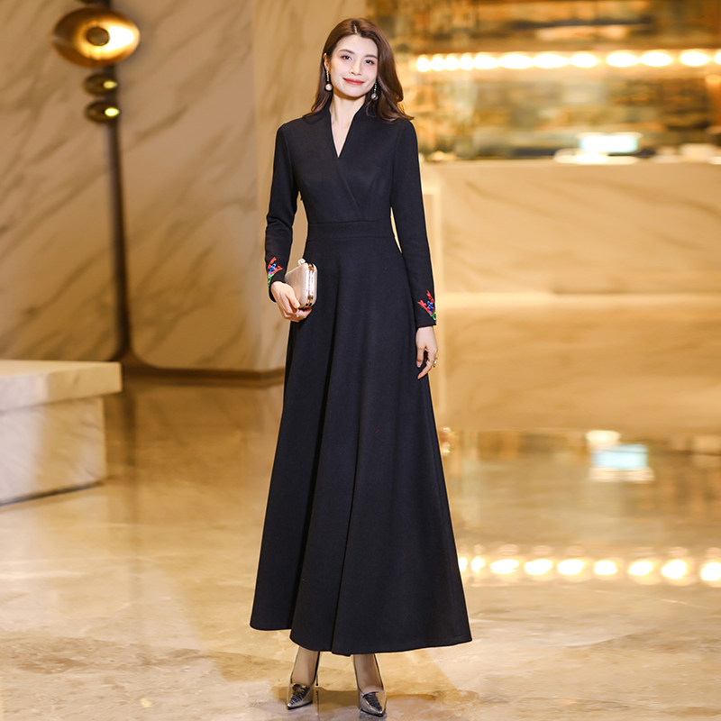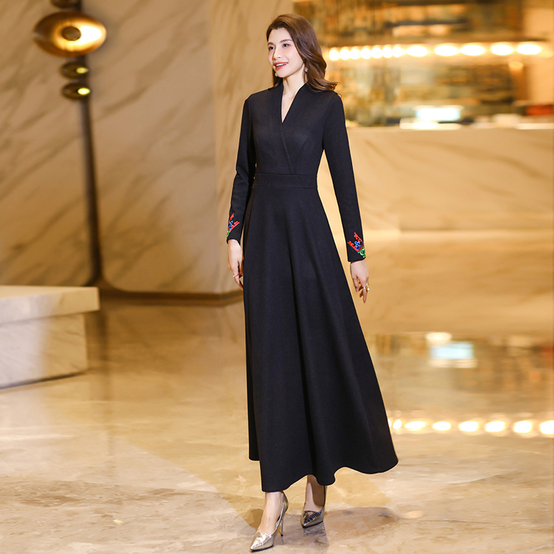 311线报网描述:秋冬刺绣长裙,气质优雅显身材
