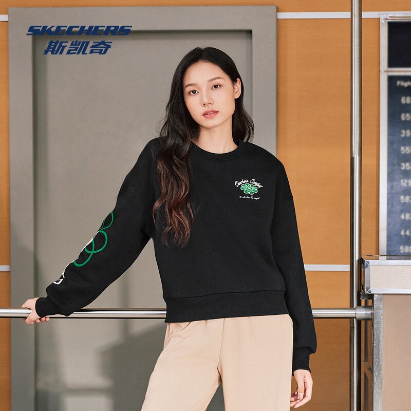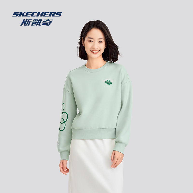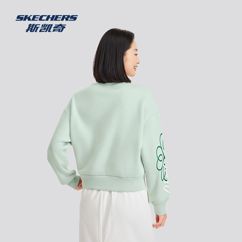skechers斯凯奇官方冬季女款舒适版圆领套头针织加绒卫衣