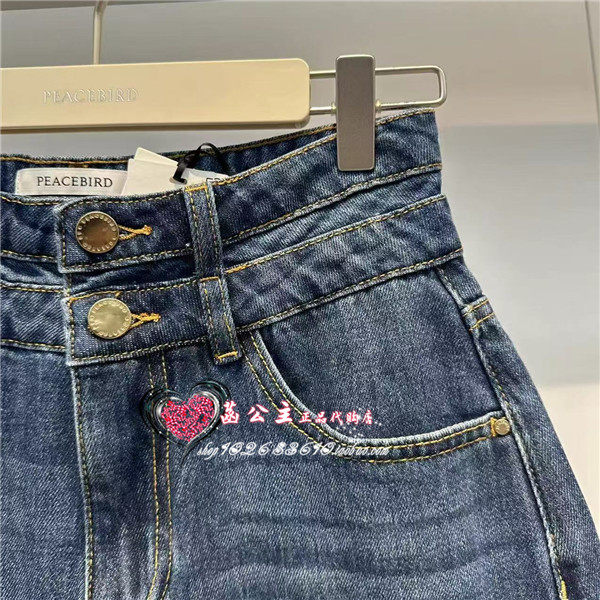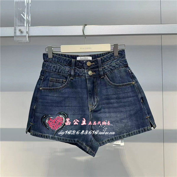 A1HBE2445太平鸟女装2024夏专柜正品双腰头牛仔短裤A1HBE244555