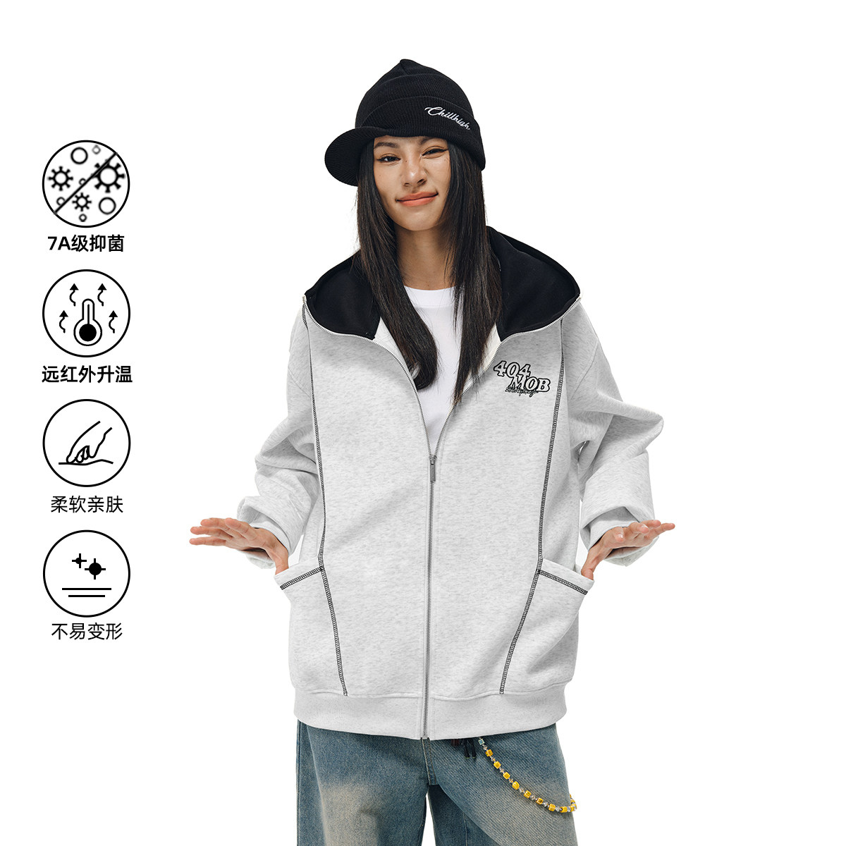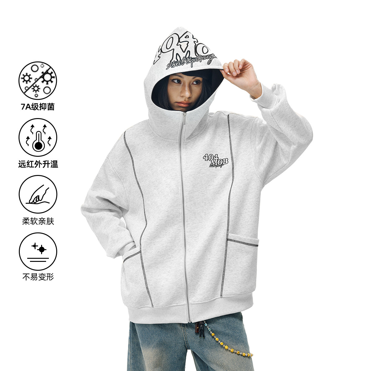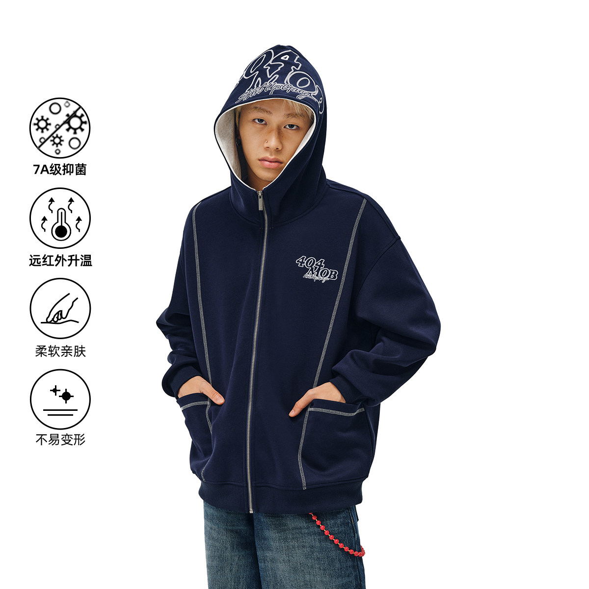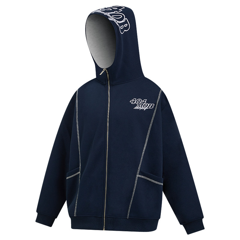 404MOB明线设计重工刺绣开衫卫衣美式复古潮牌情侣夹克外套男女款