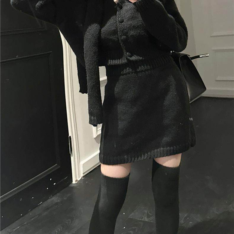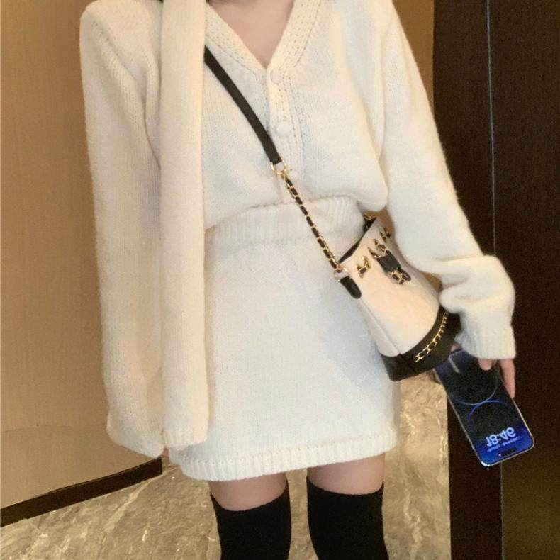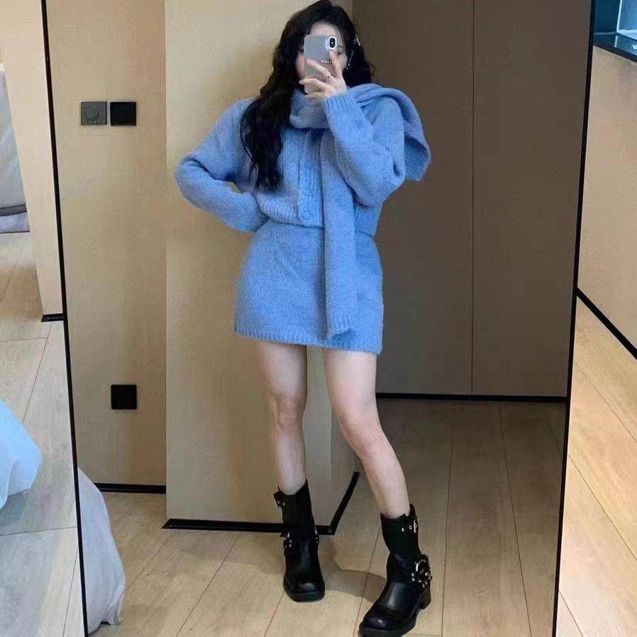 大码新年战袍红色针织毛衣连衣裙子女2024年新款小个子套装秋冬季