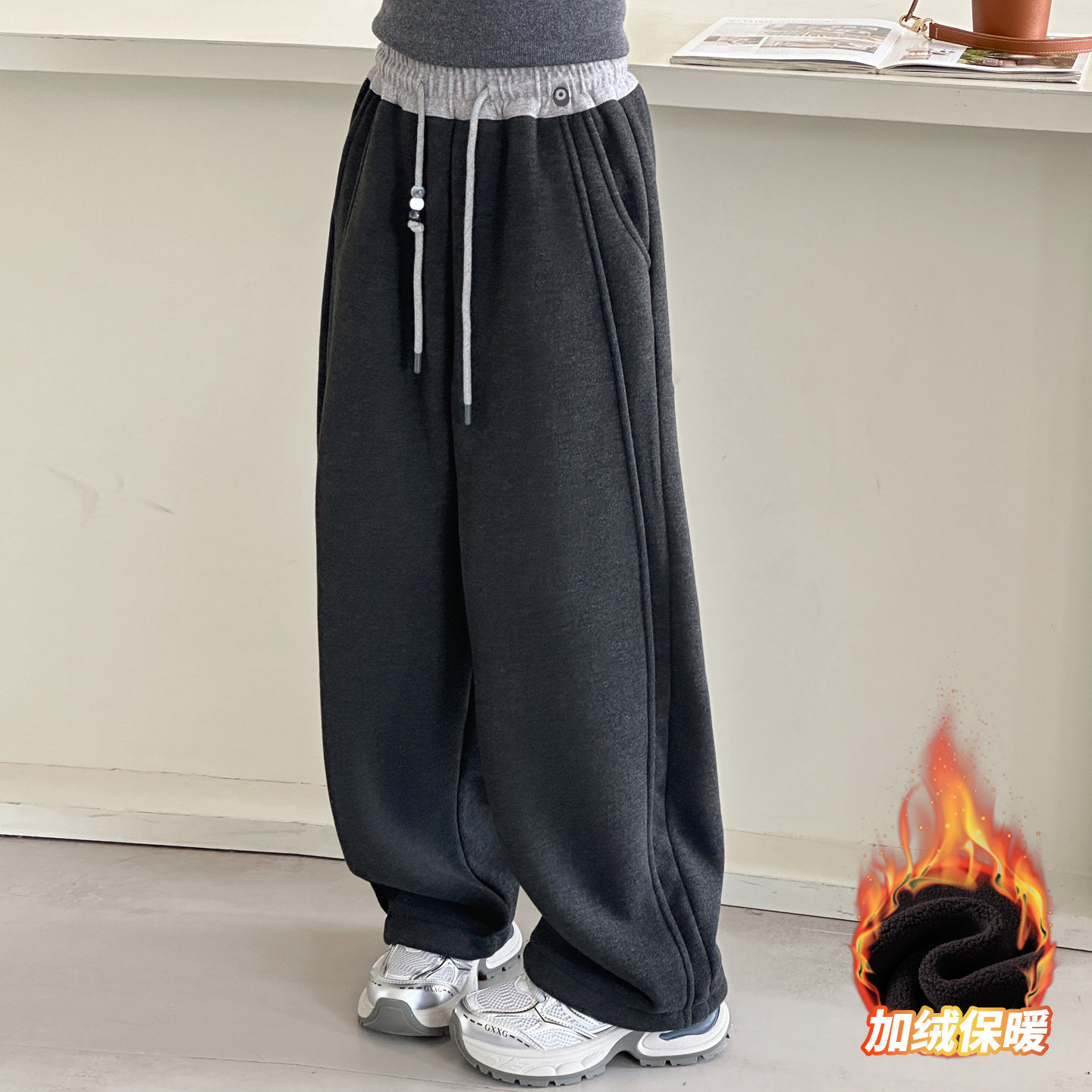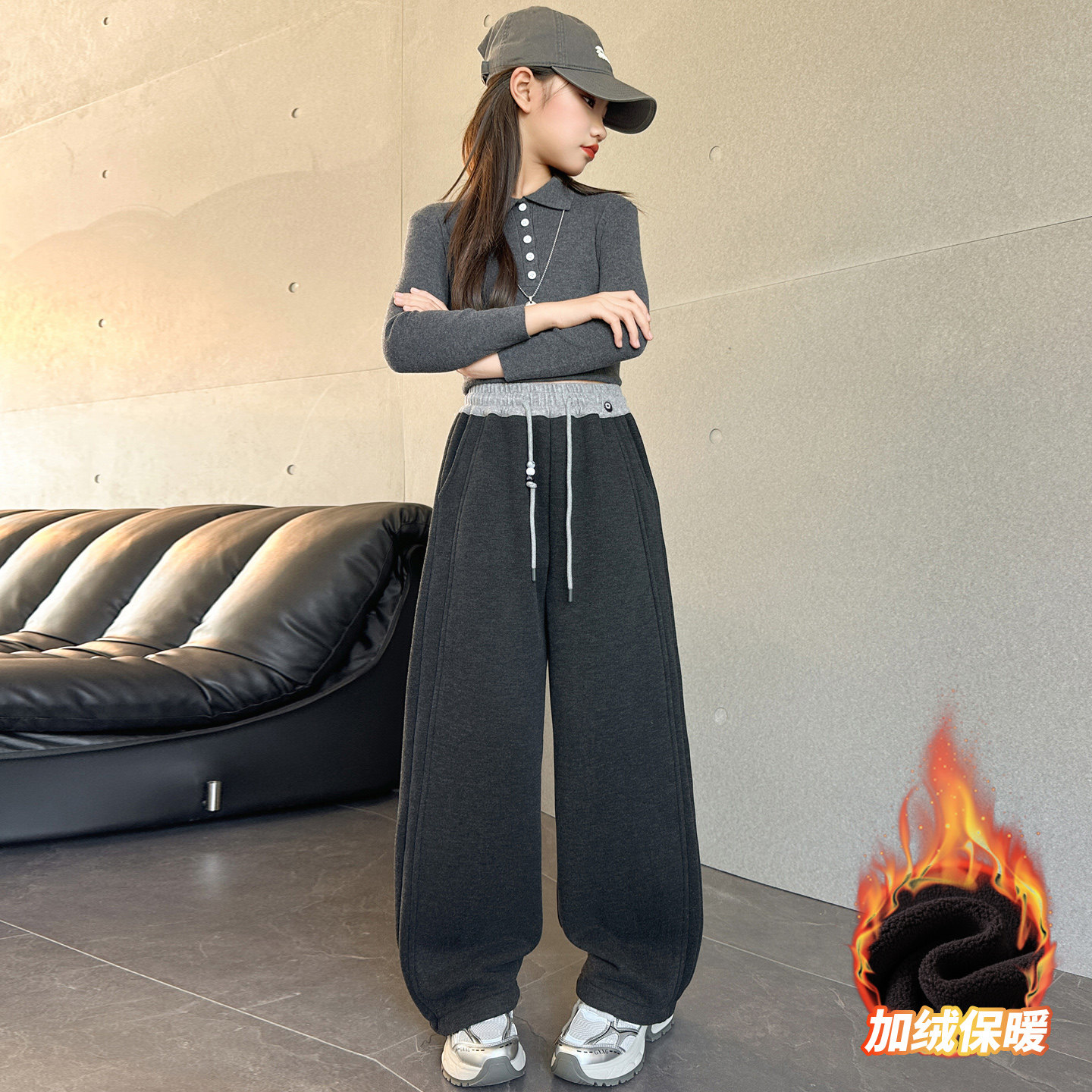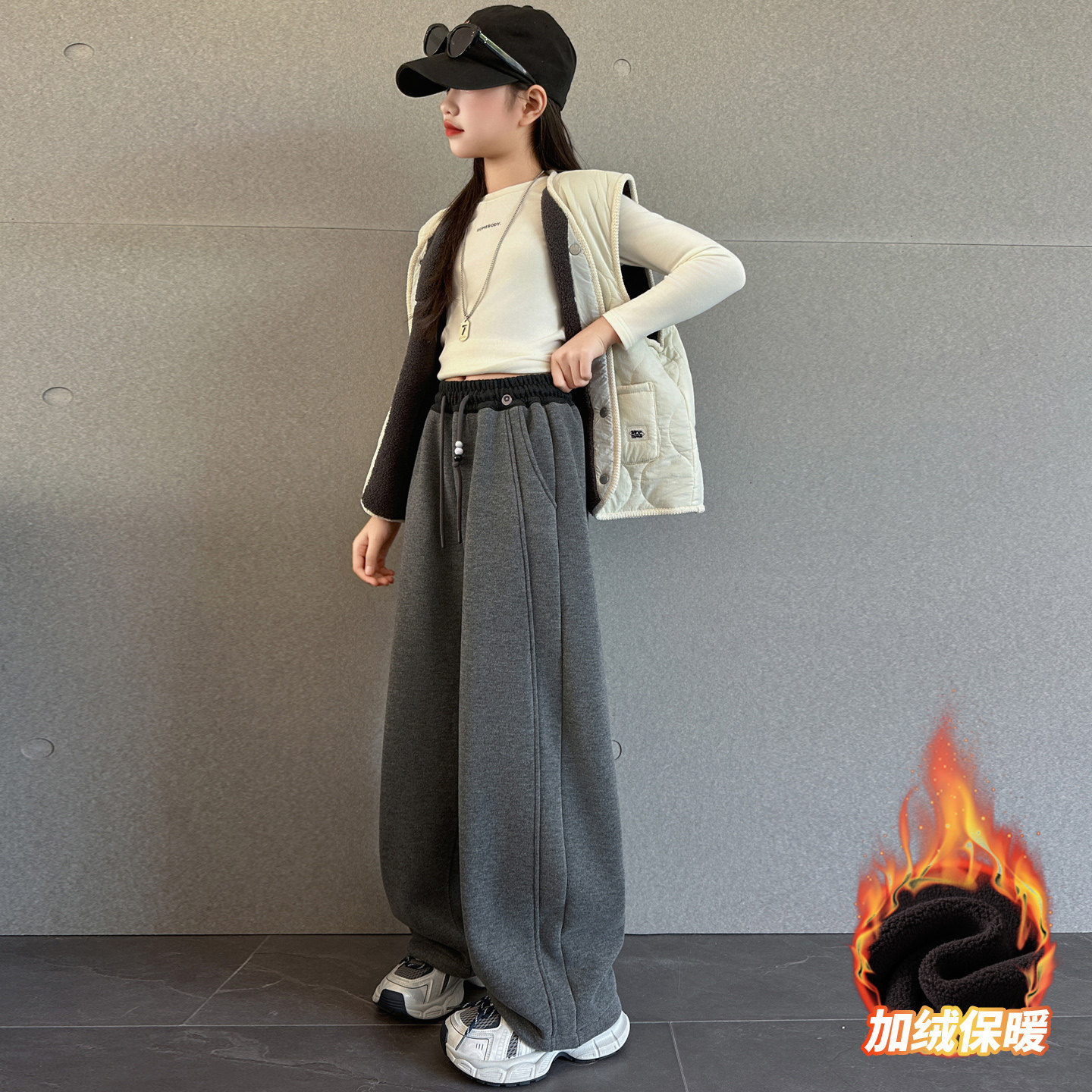 女童冬装糯米裤2025新款加绒加厚阔腿裤女孩大童初中生弯刀裤子