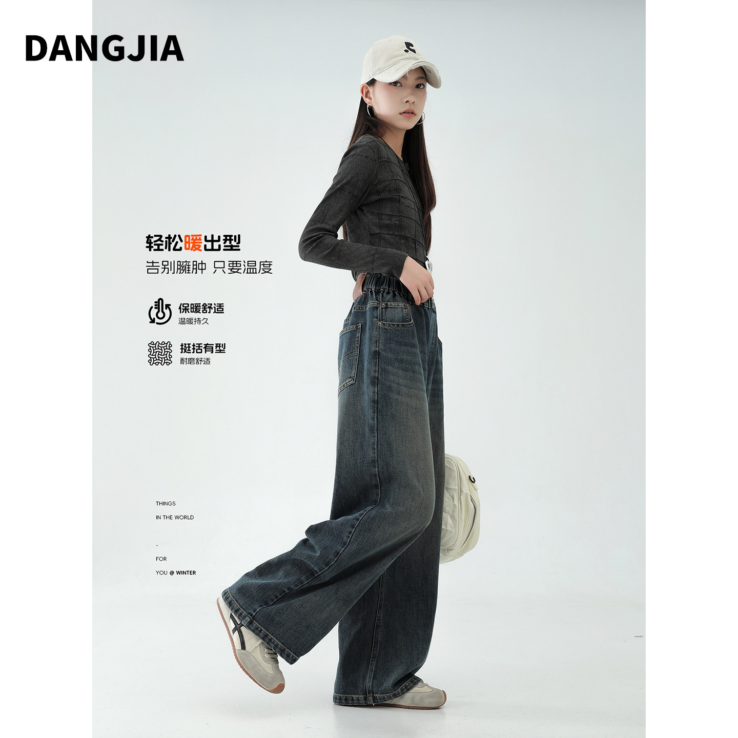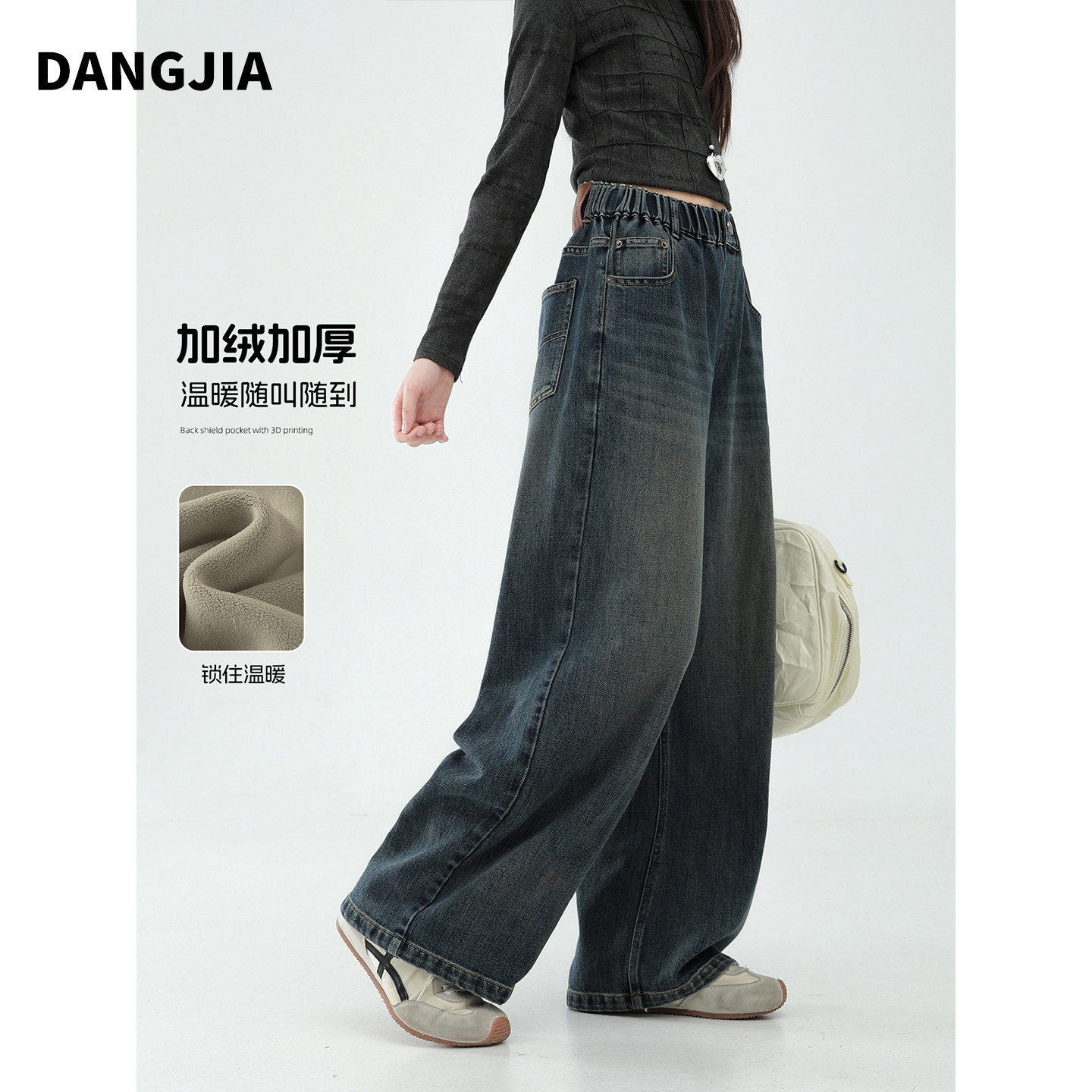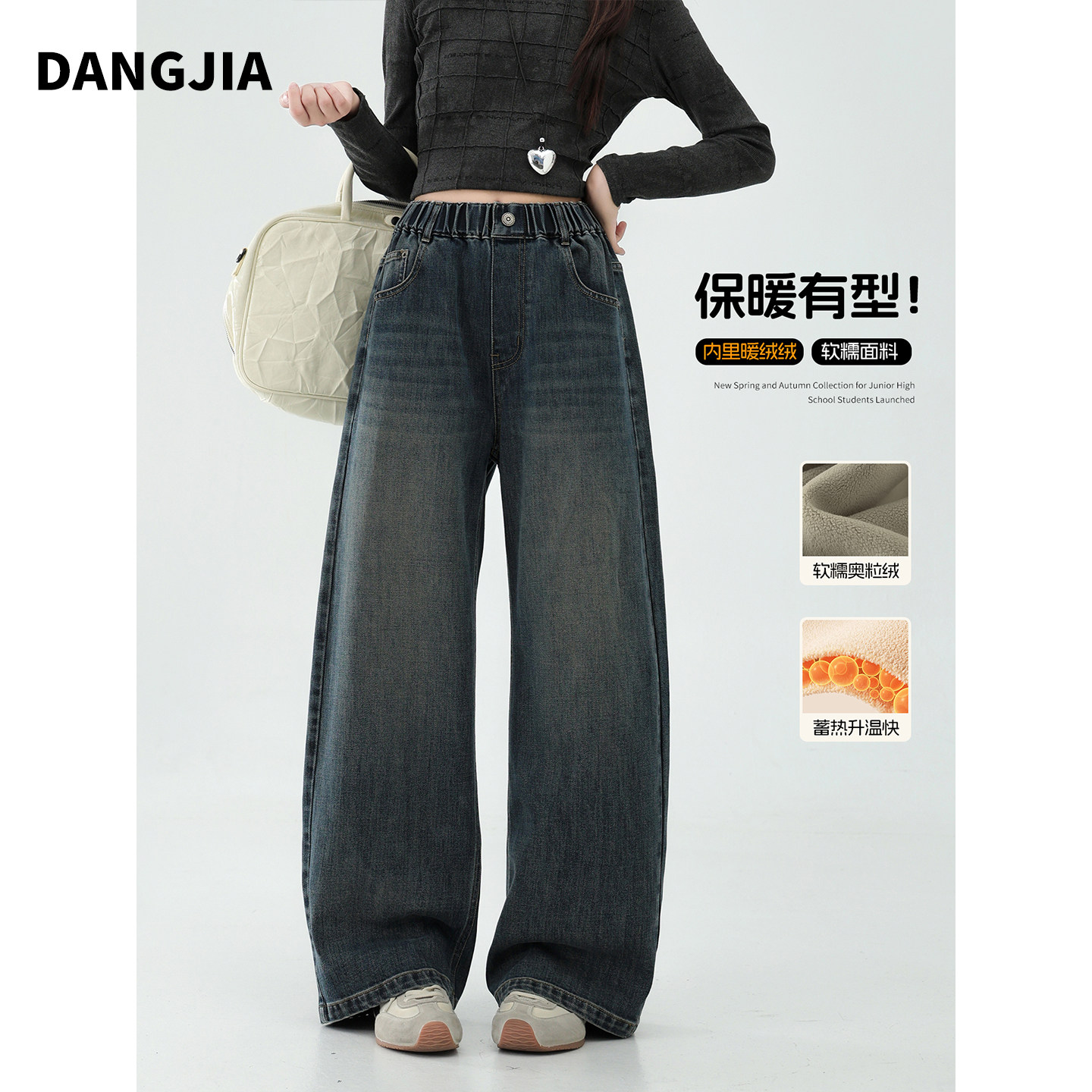 女童牛仔裤秋冬2025新款女大童直筒休闲裤冬装初中生女孩加绒裤子