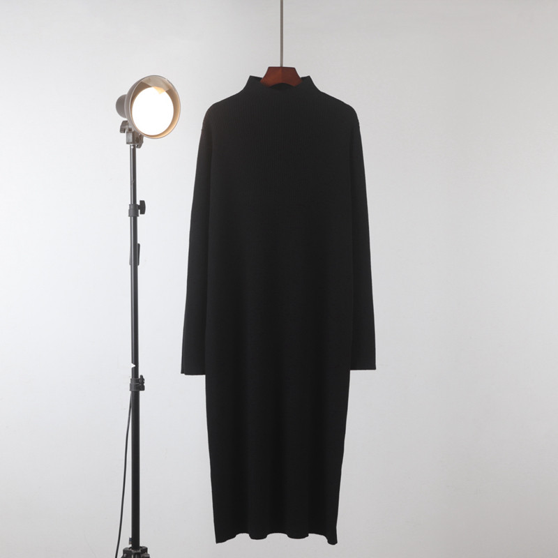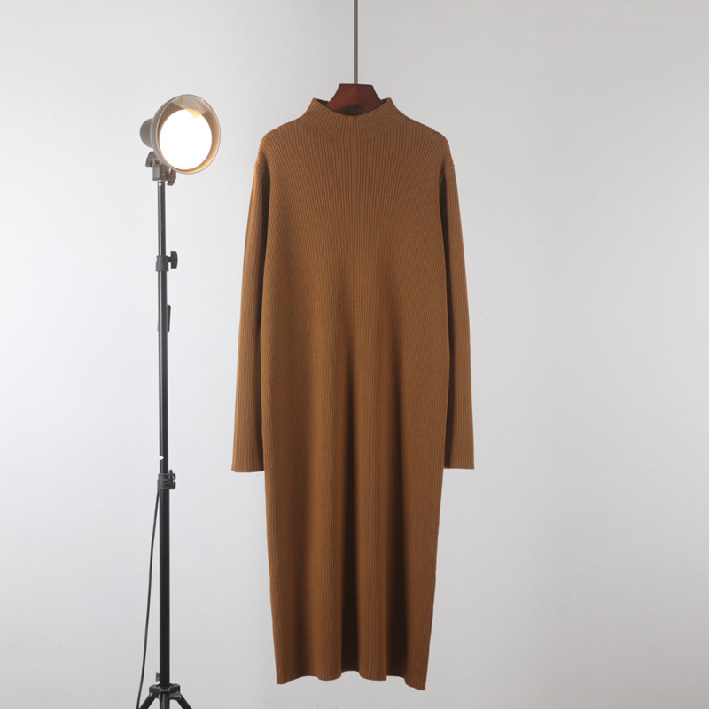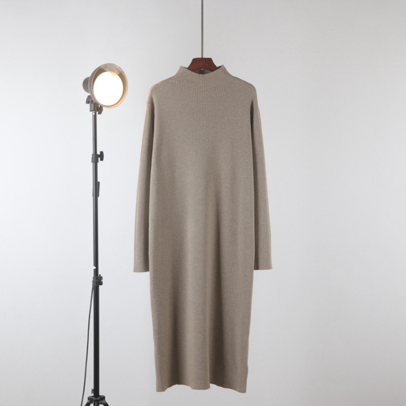 秋冬季配大衣的毛衣裙女宽松长袖内搭中长款打底衫过膝针织连衣裙