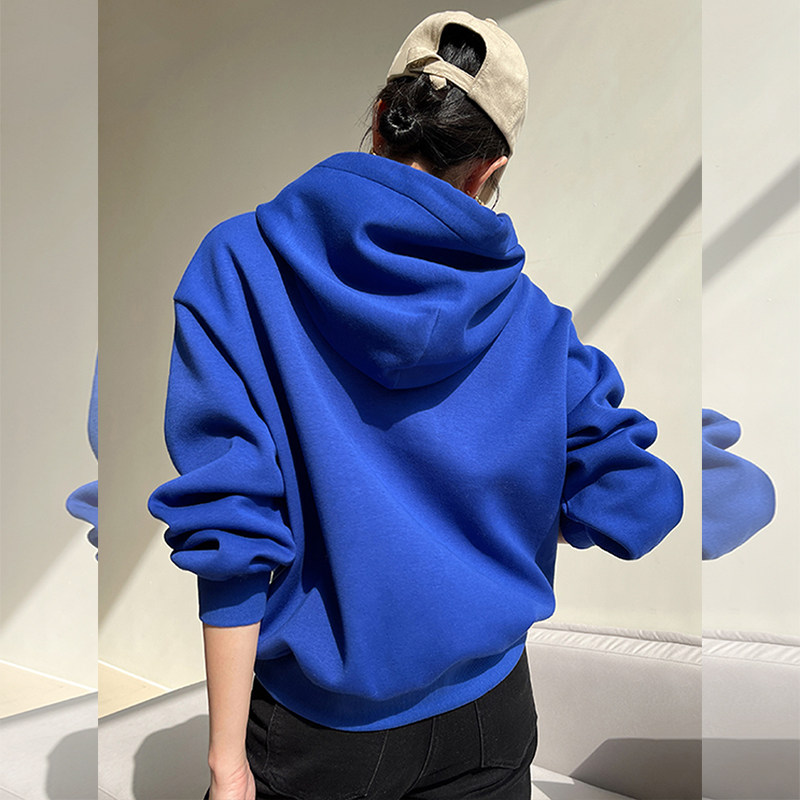 克莱因蓝连帽卫衣女款小个子秋冬新款高级感加绒韩系慵懒宽松上衣