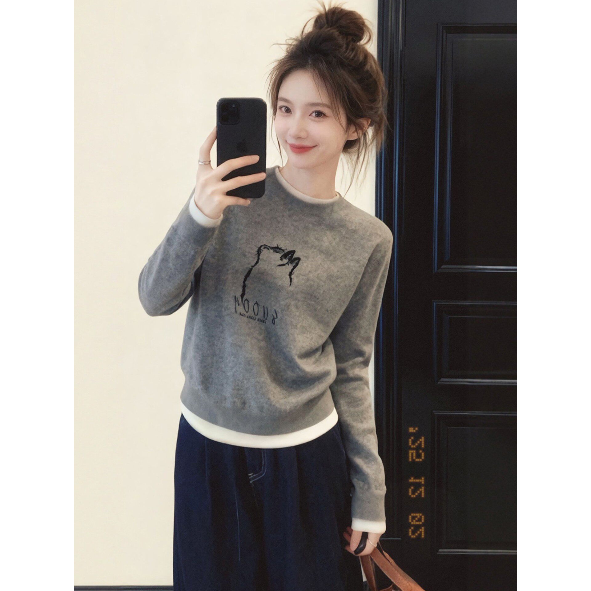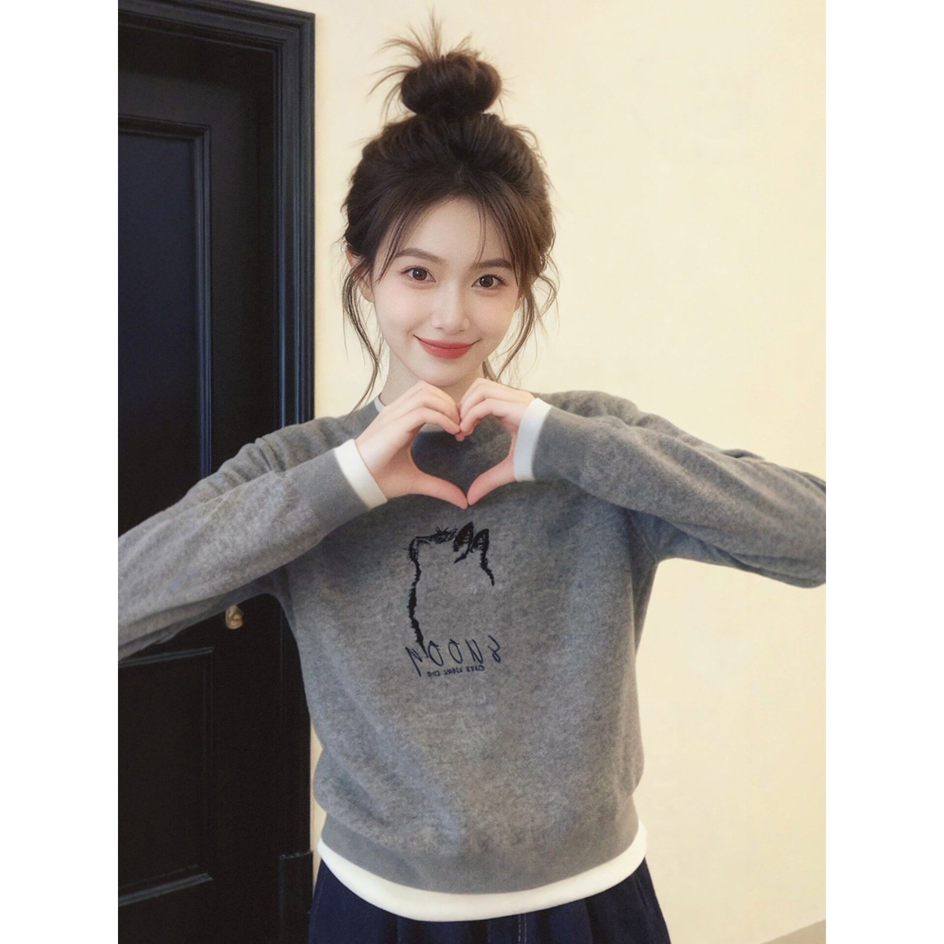 灰色圆领假两件长袖针织衫毛衣女款2025新款巨好看的冬装内搭上衣