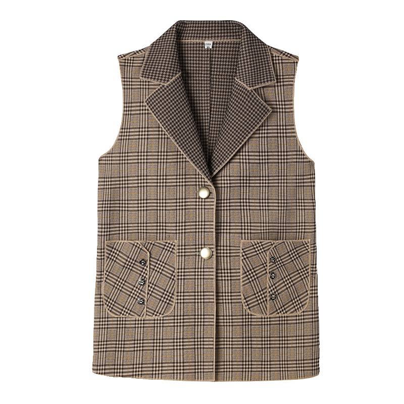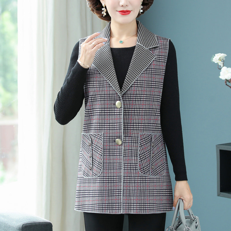 妈妈装马甲春秋新款中老年女装格子西装领无袖外套40岁60婆婆马夹