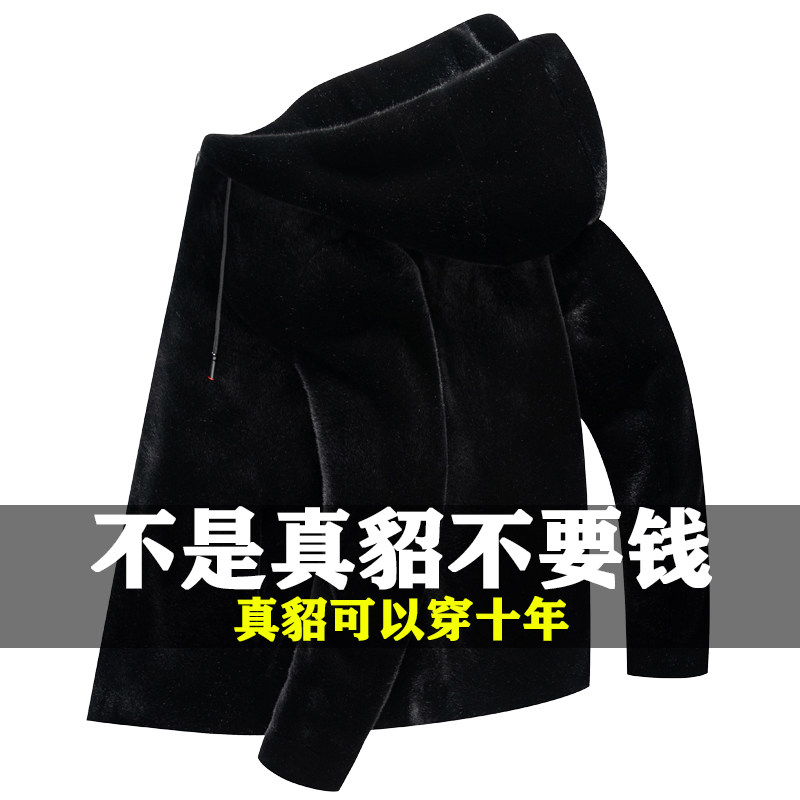 海宁貂皮外套男貂绒大衣整貂皮草水貂毛加厚皮毛一体冬季真皮皮衣