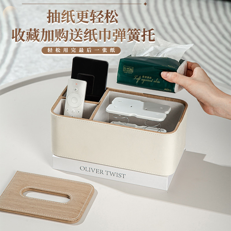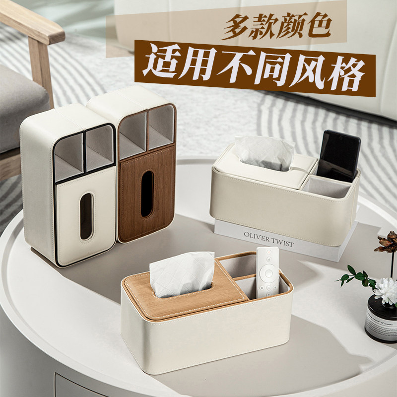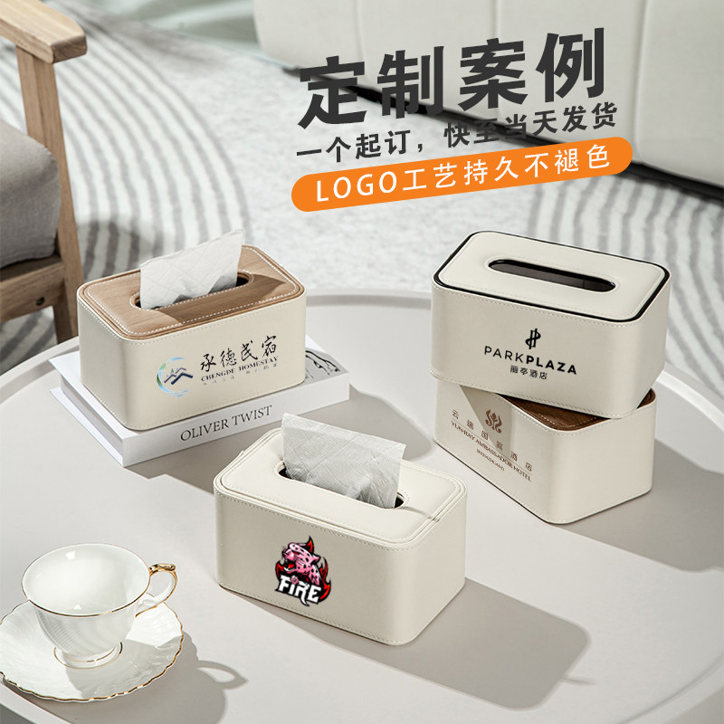 北欧简约创意纸巾盒客厅多功能桌面收纳盒皮革餐巾抽纸盒定制logo