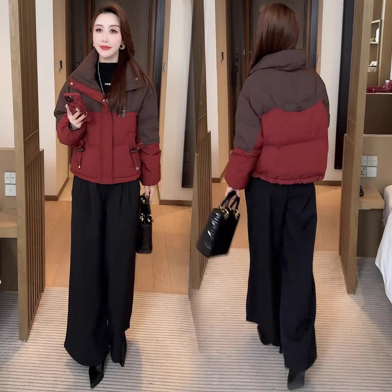 撞色棉服女冬季2026年新款外套棉衣今年流行爆款小个子立领面包服