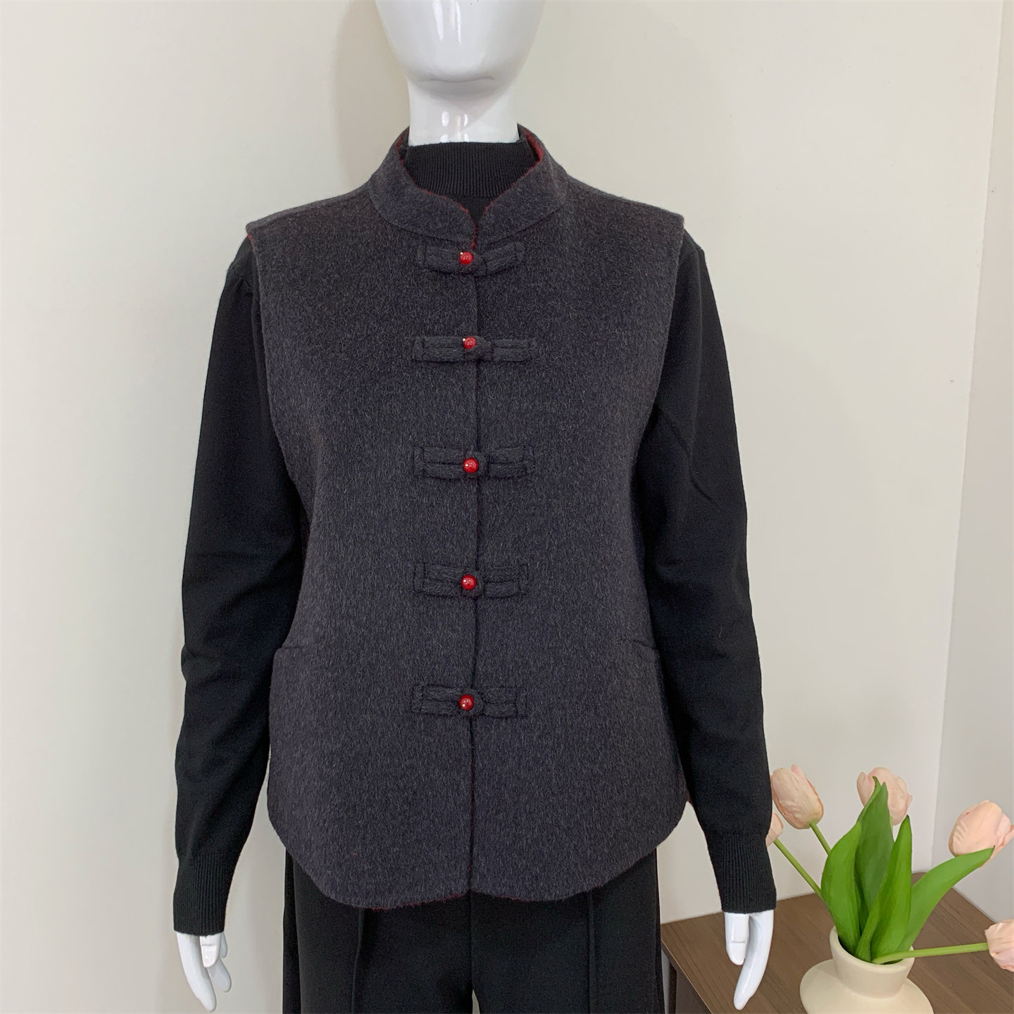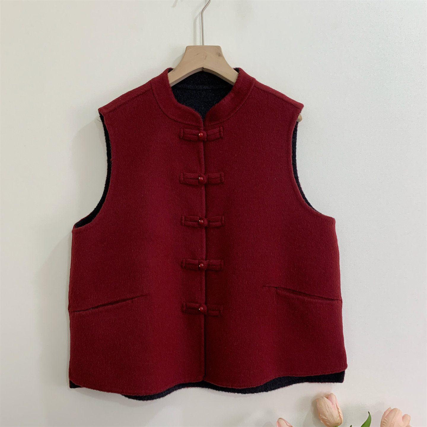 双面呢春秋羊毛马甲女装2026新款妈妈春装新中式国风羊绒坎肩外套