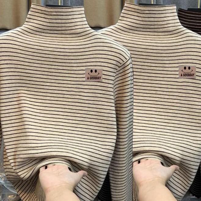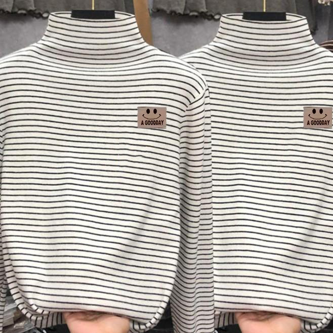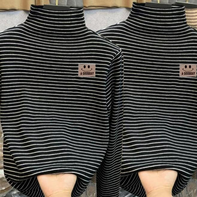 男女童德绒内搭打底衫秋冬款大儿童半高领长袖T恤加厚条纹上衣
